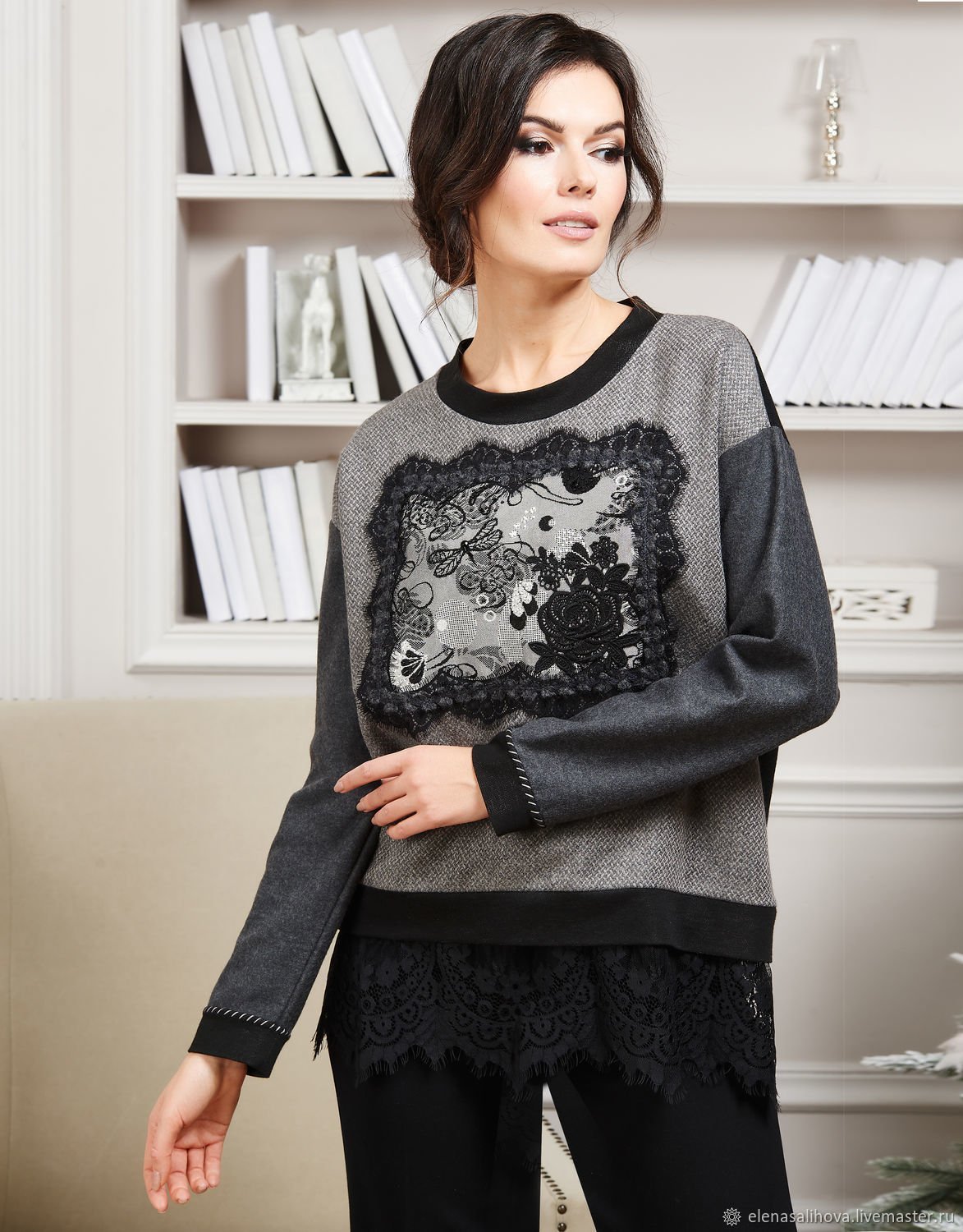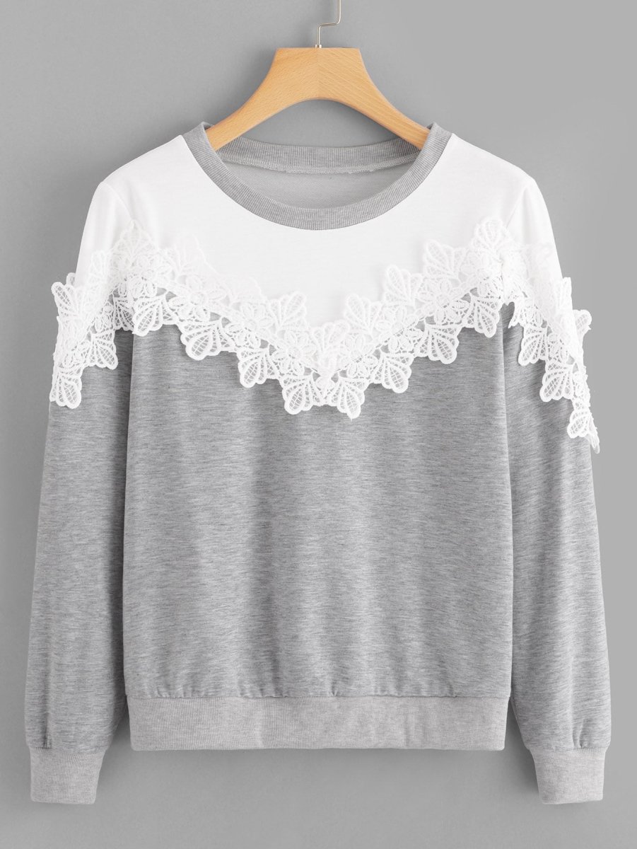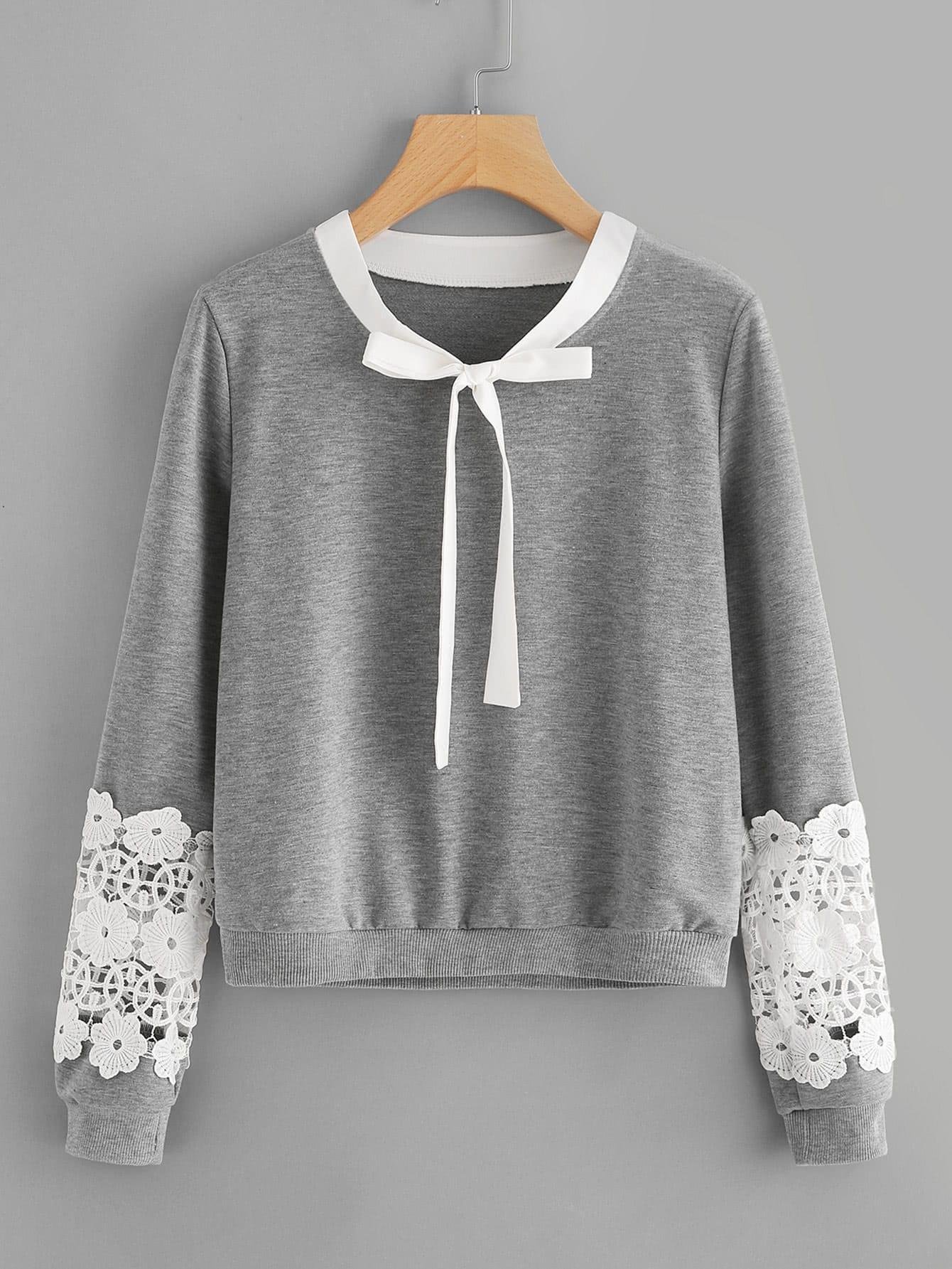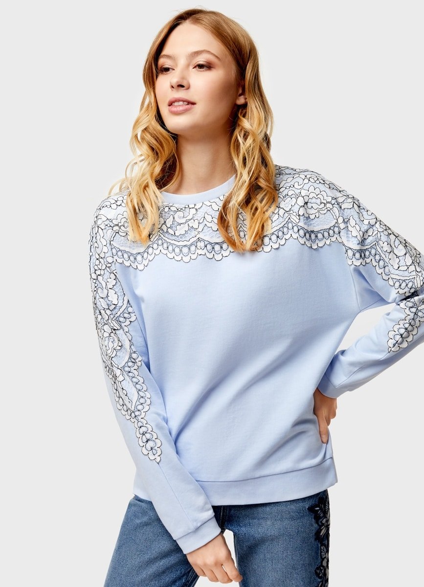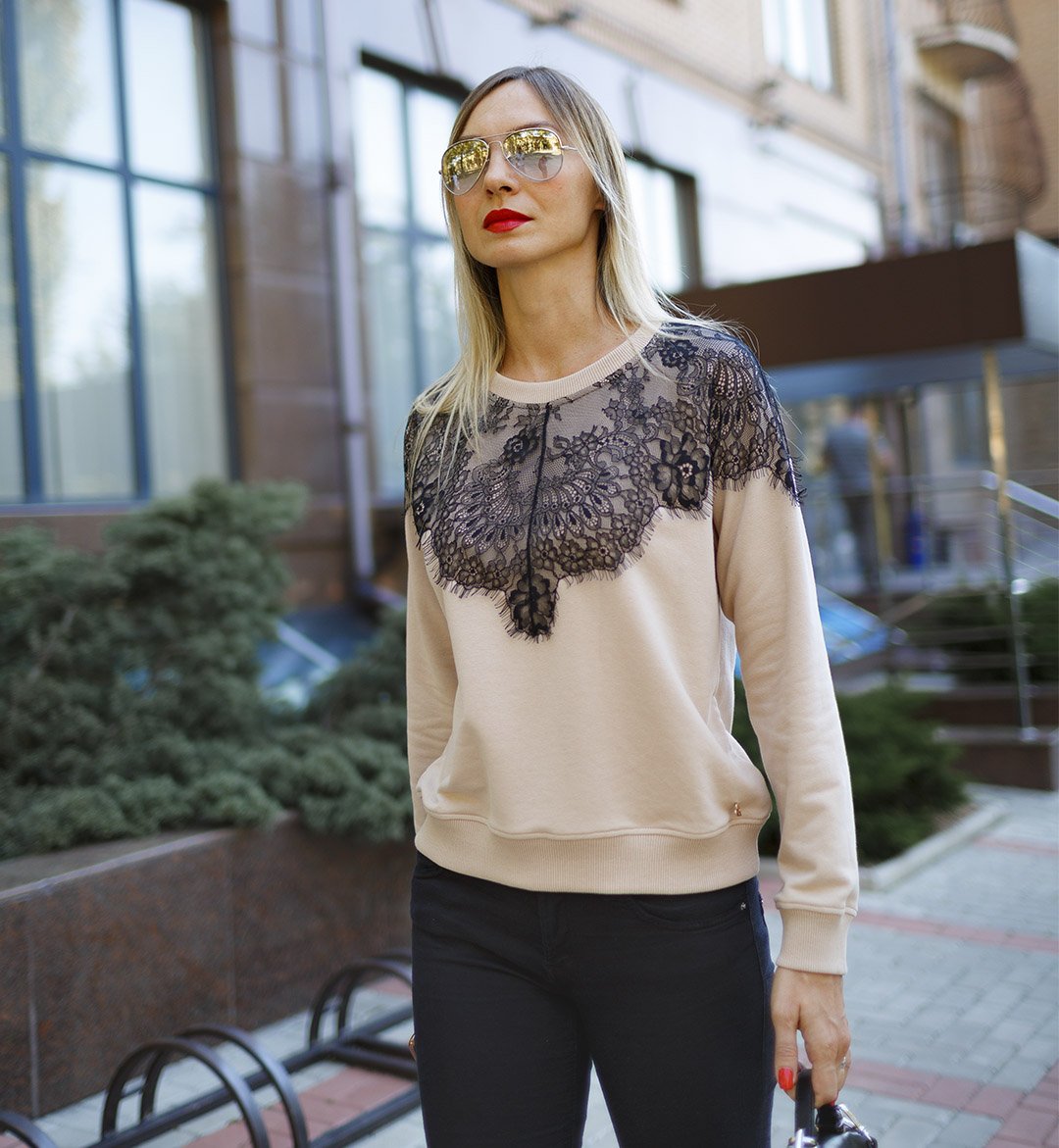 Свитшот, украшенный кружевом