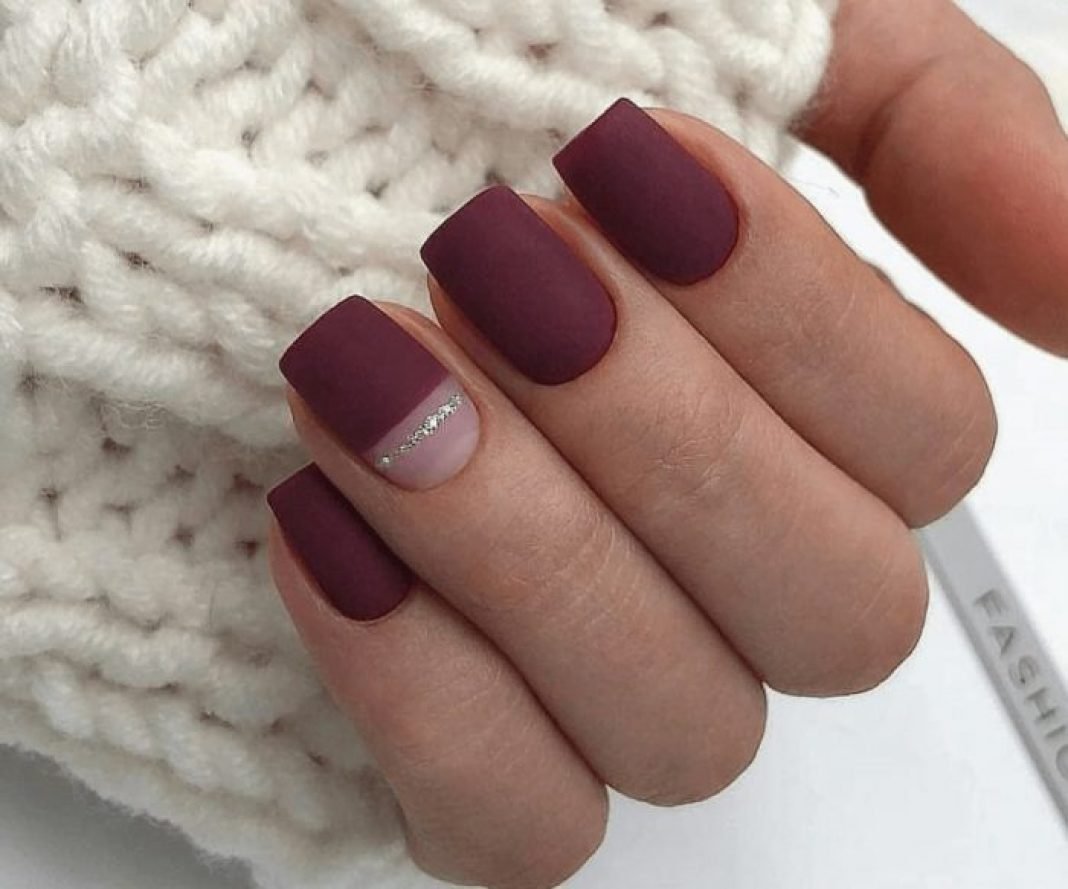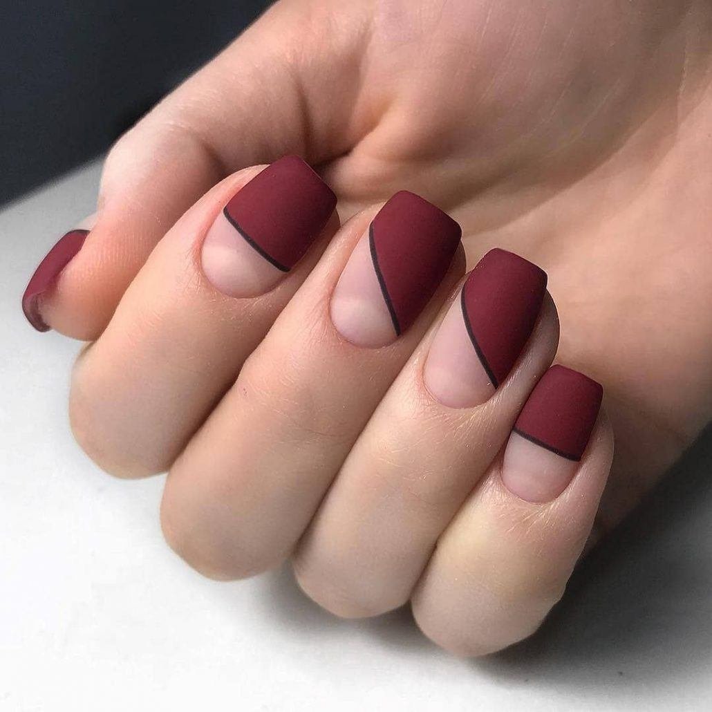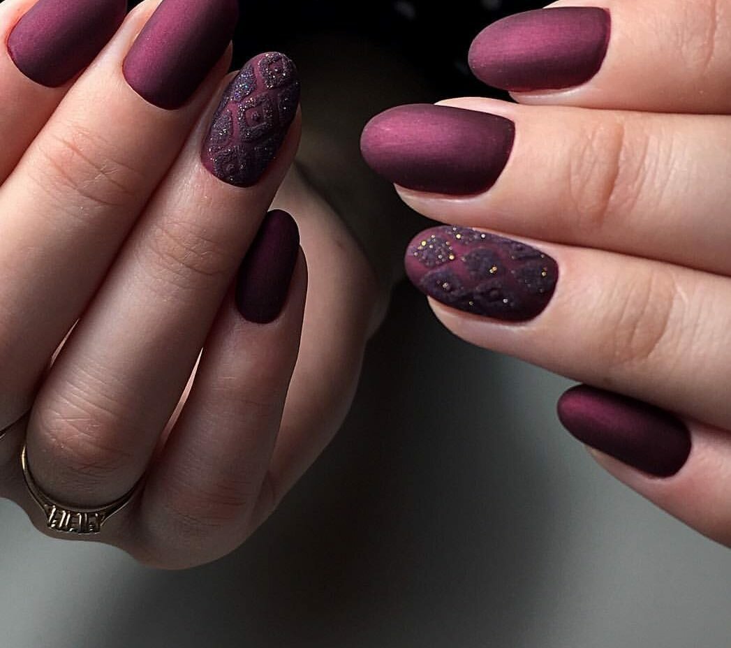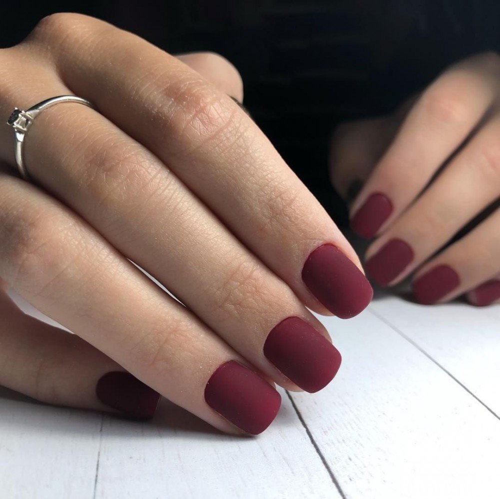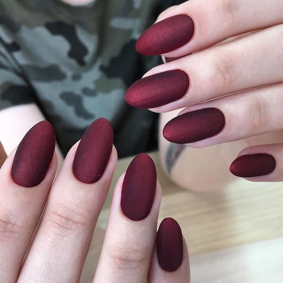 Матовый бордовый маникюр тренд