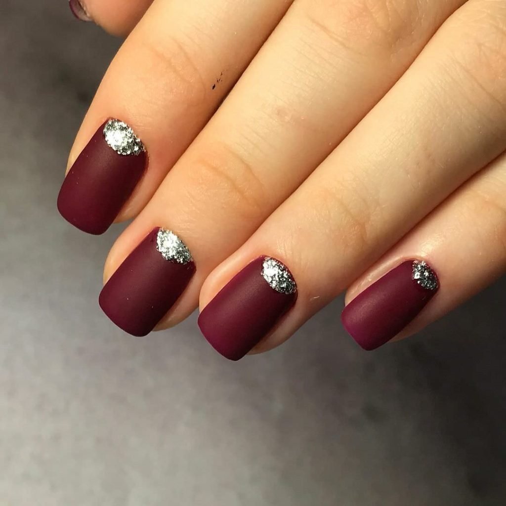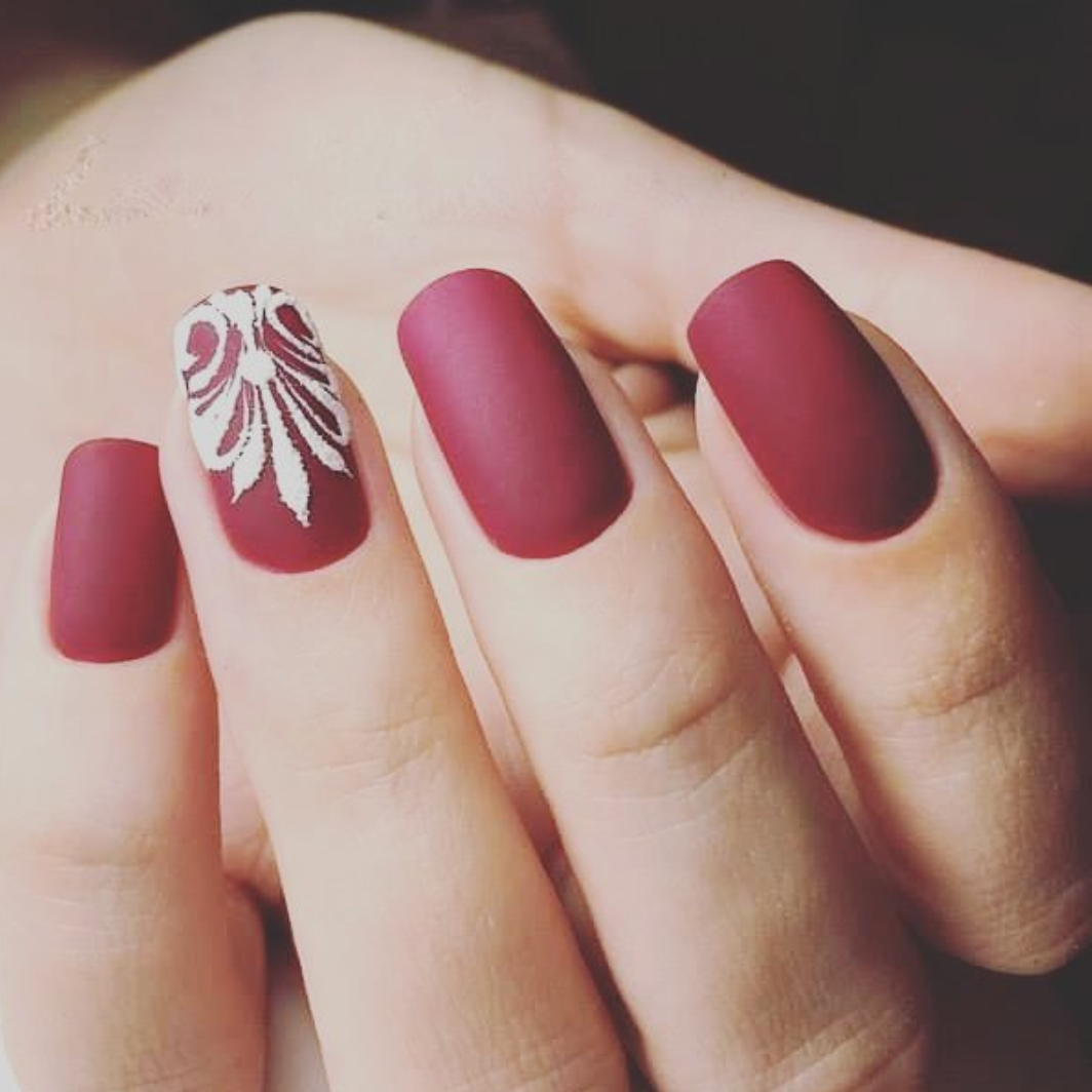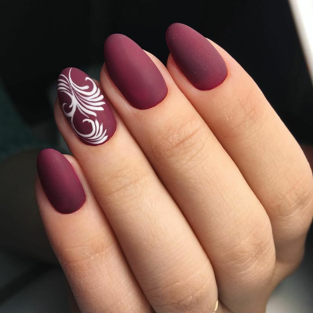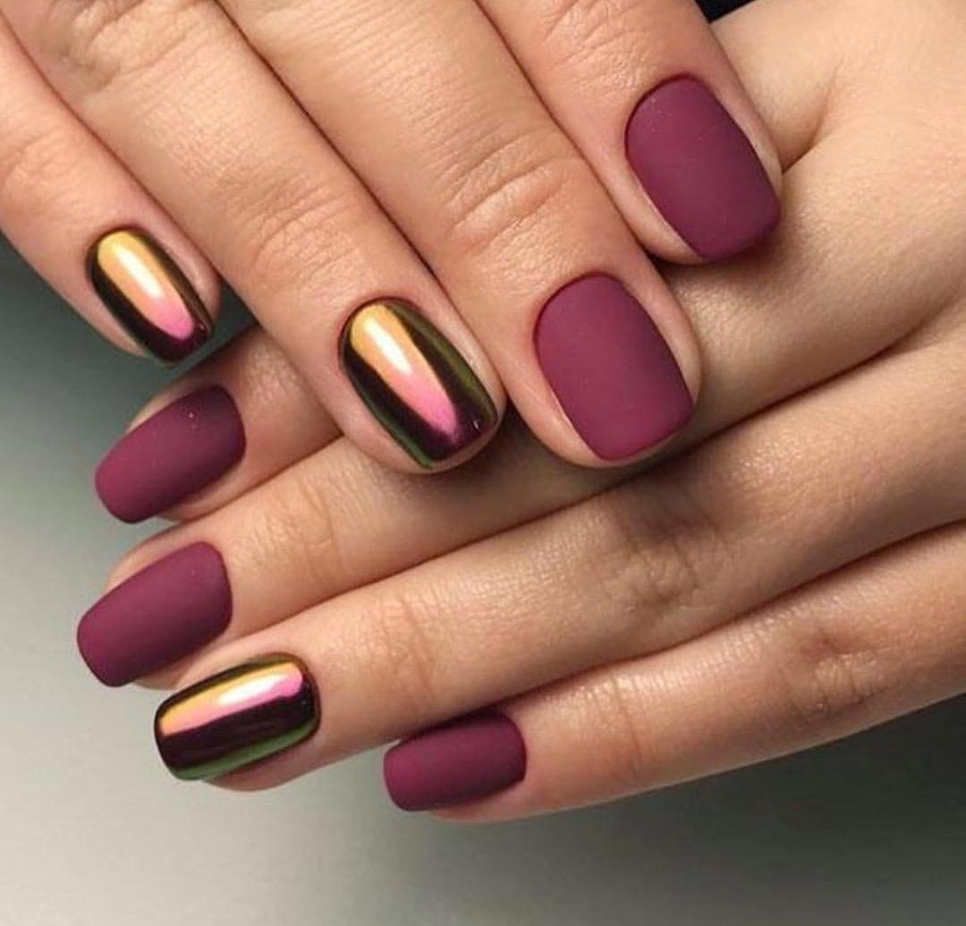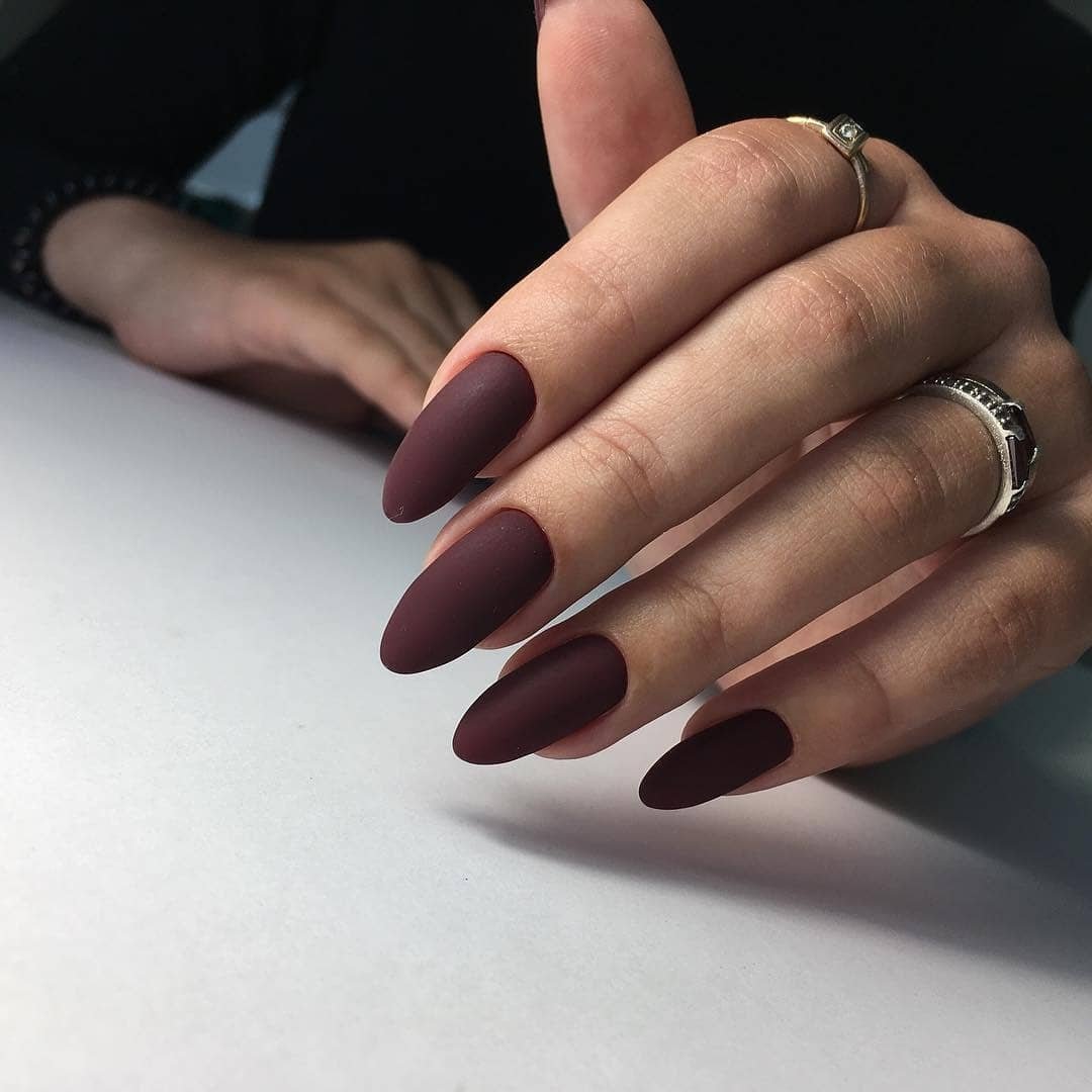 Матовый бордовый маникюр тренд