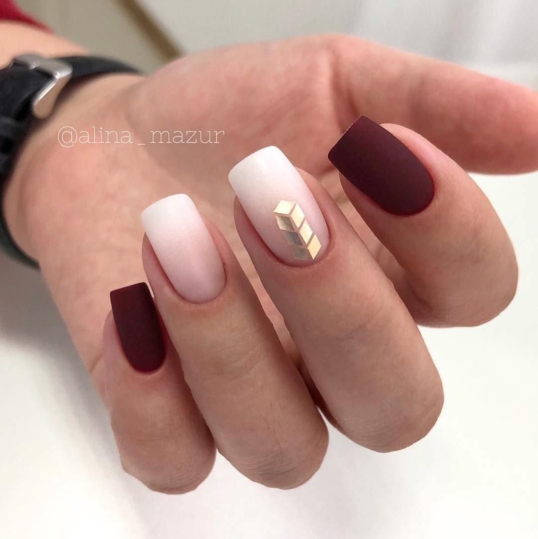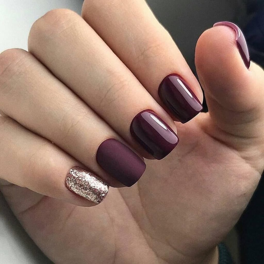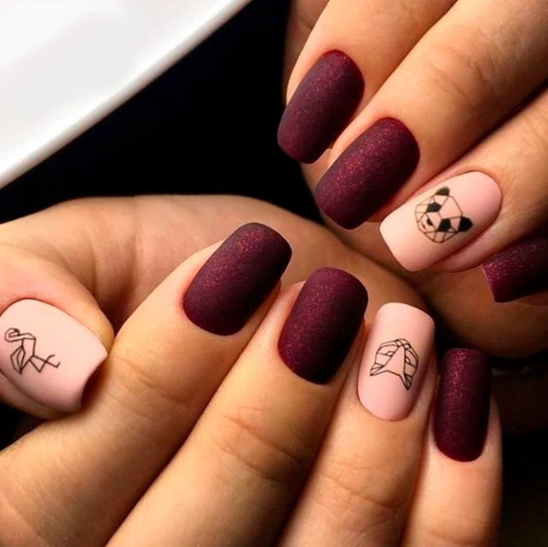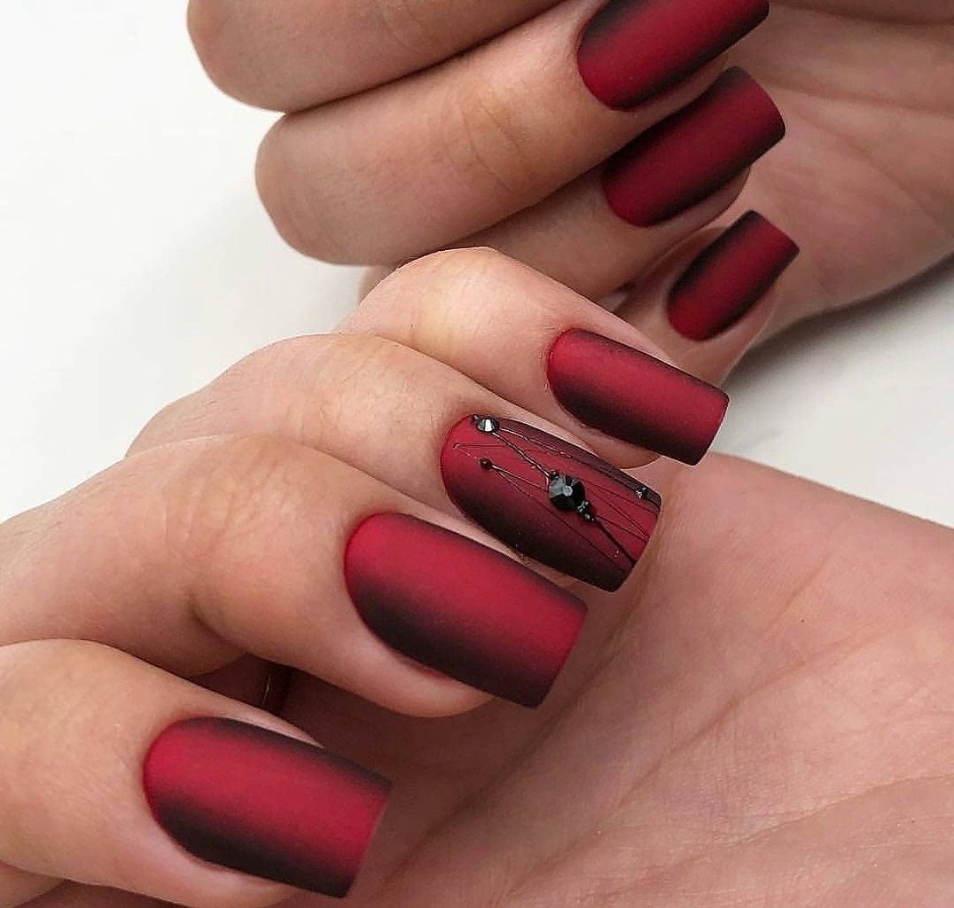 Матовый бордовый маникюр тренд