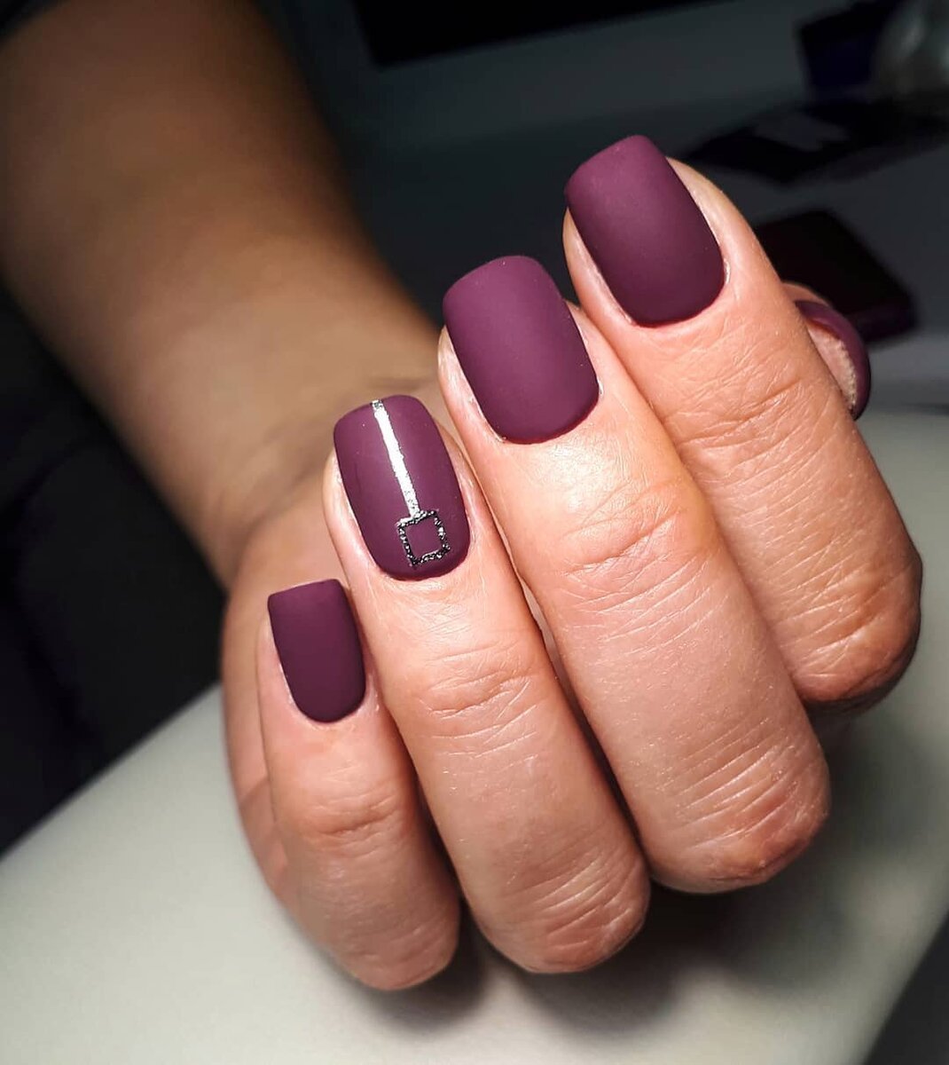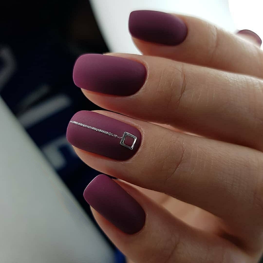 Бардовые матовый маникюр