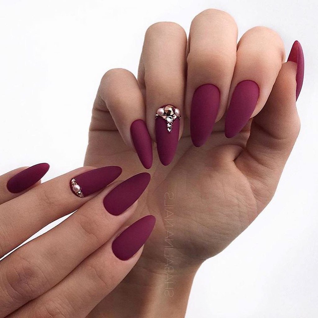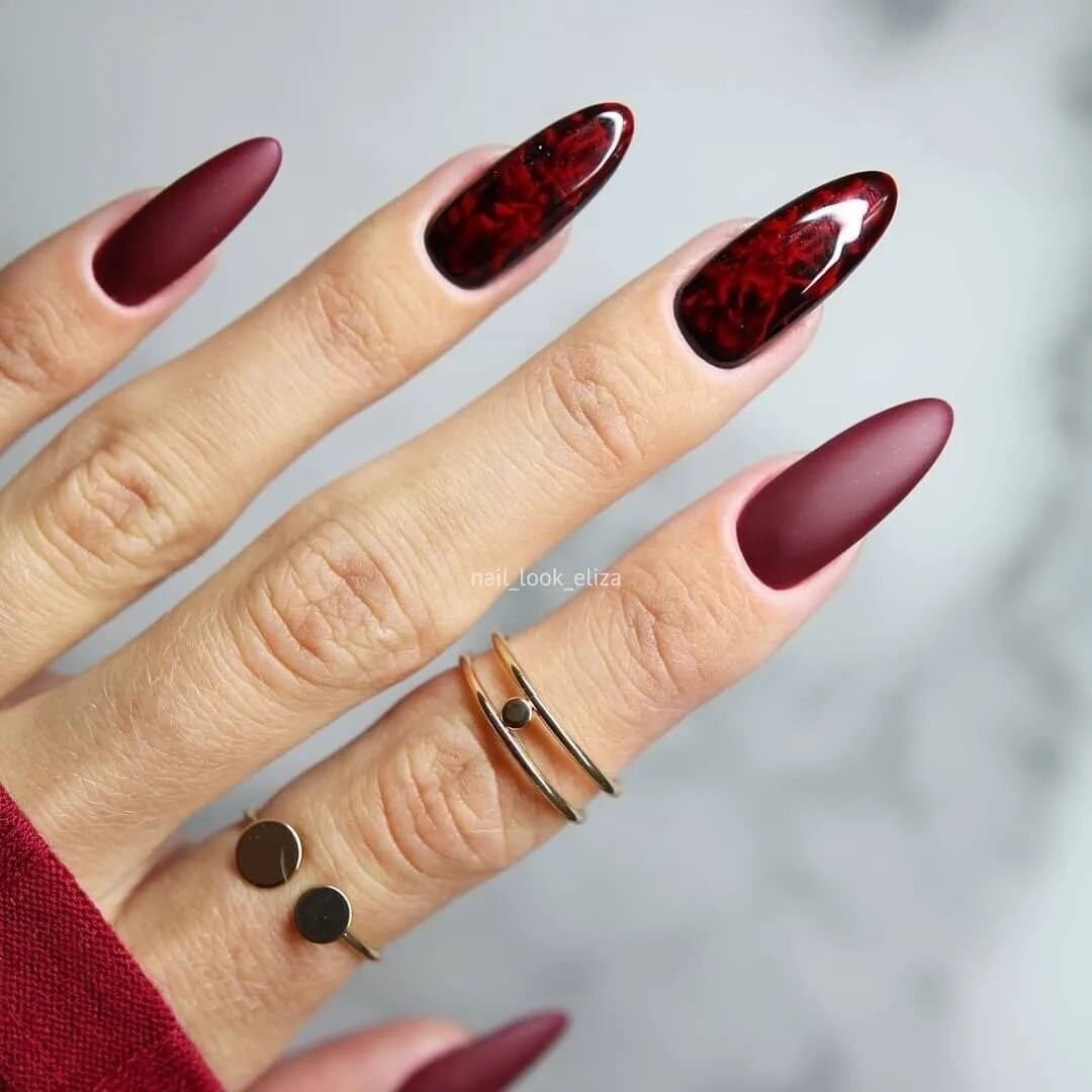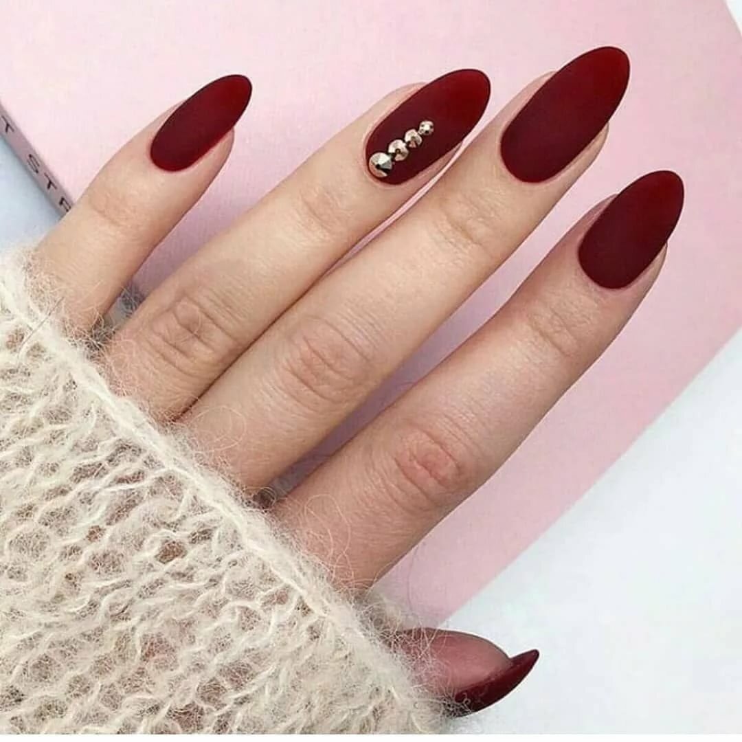 Маникюр 2022 миндаль бордо