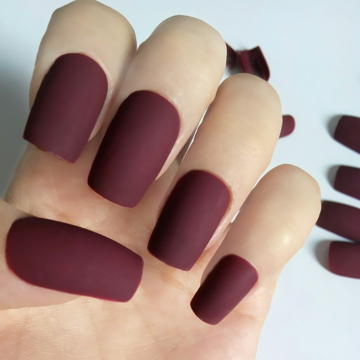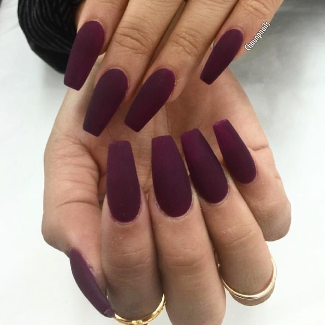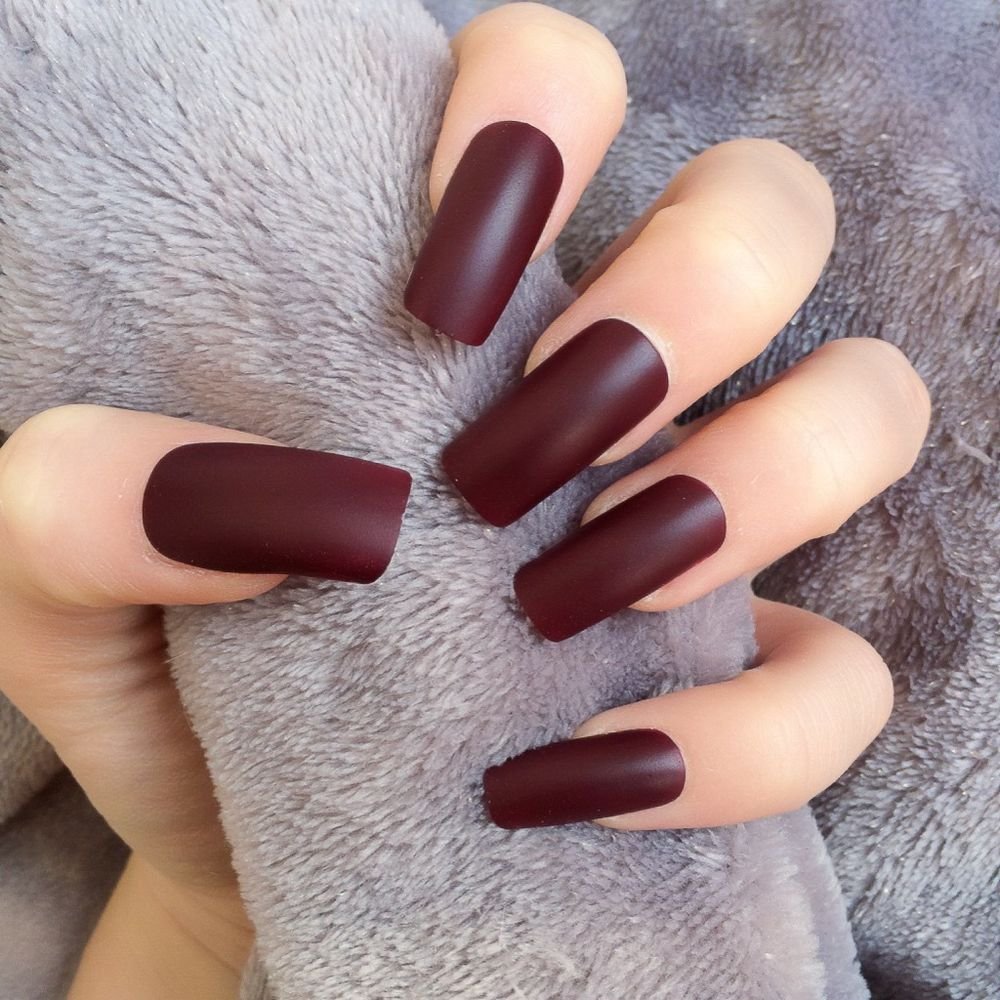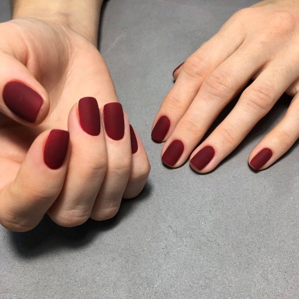 Темно бордовые ногти матовые