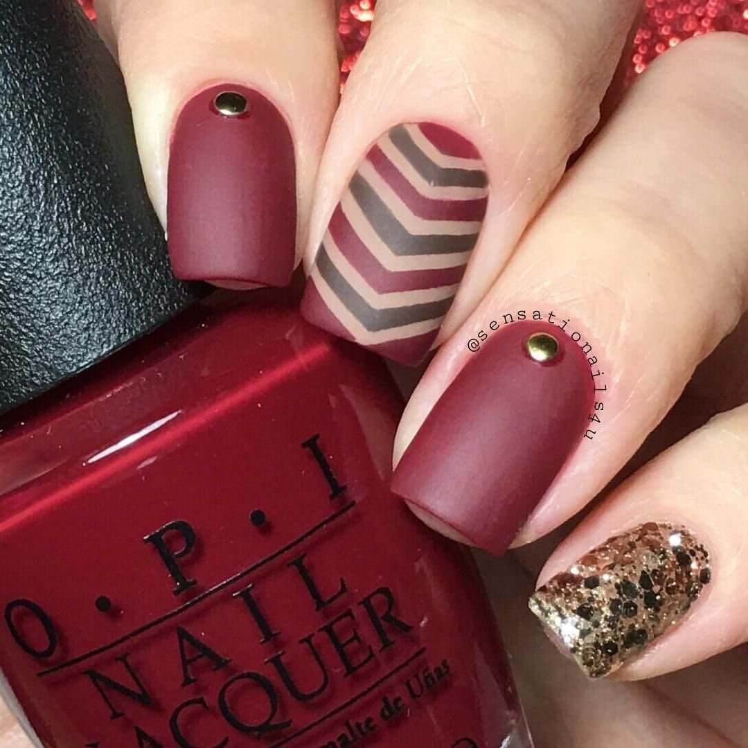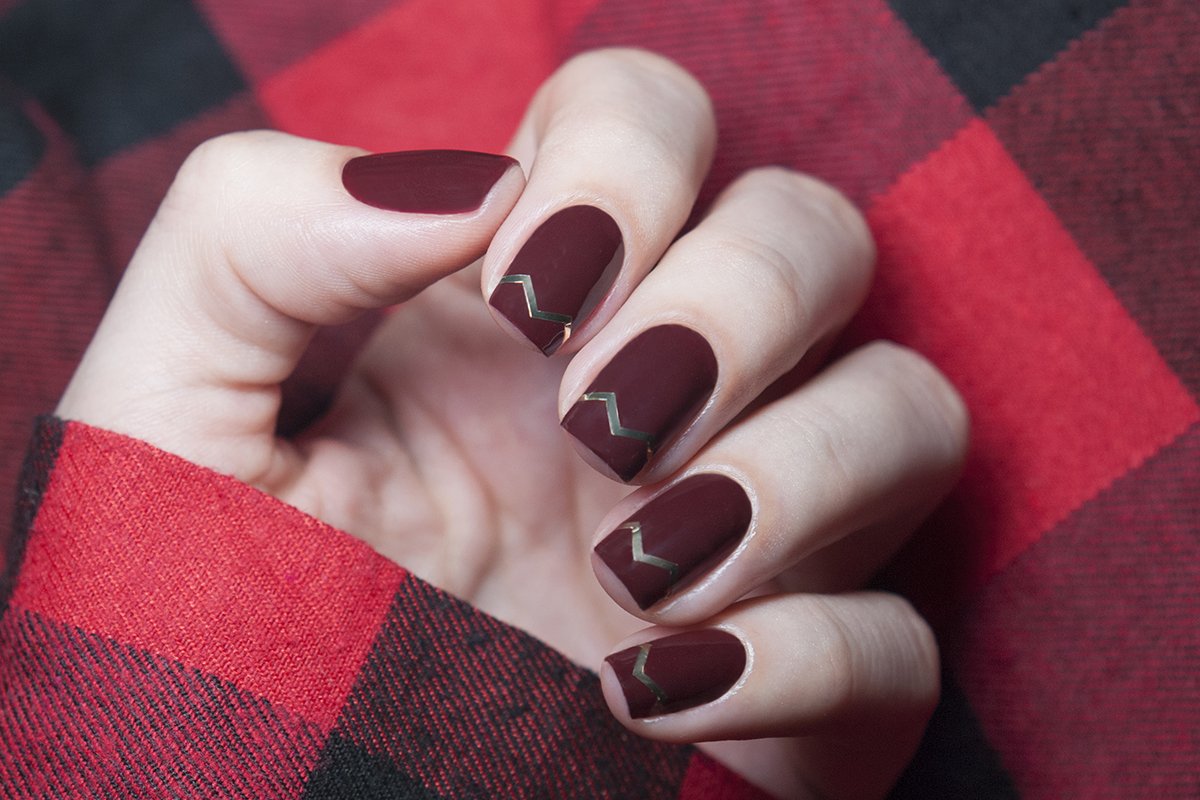 Маникюр бордо марсала бургунди с золотом