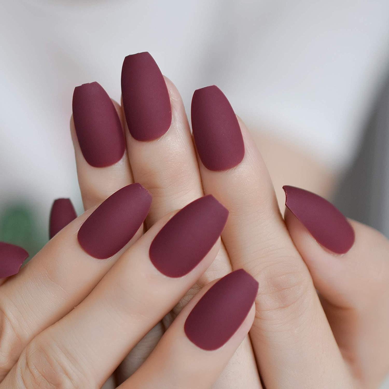 Винные матовые ногти