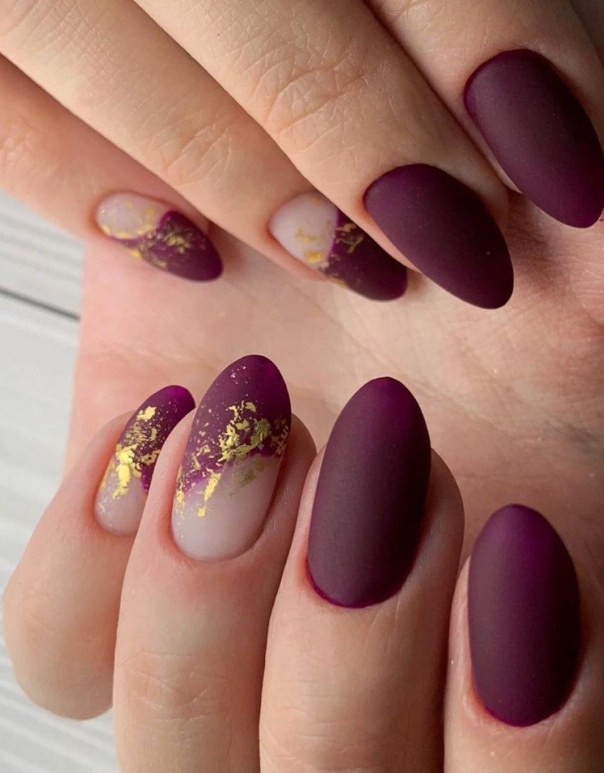 Маникюр марсала матовый