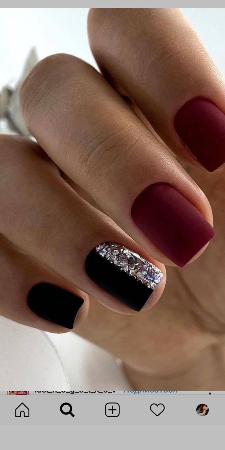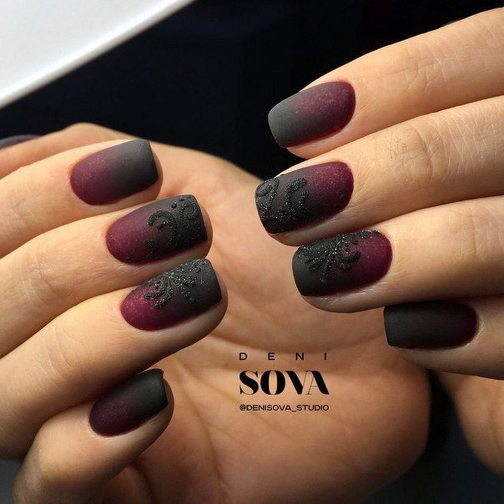 Маникюр бордовый с черным матовый