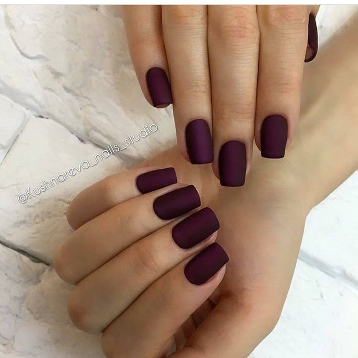 Бордовый матовый маникюр квадрат