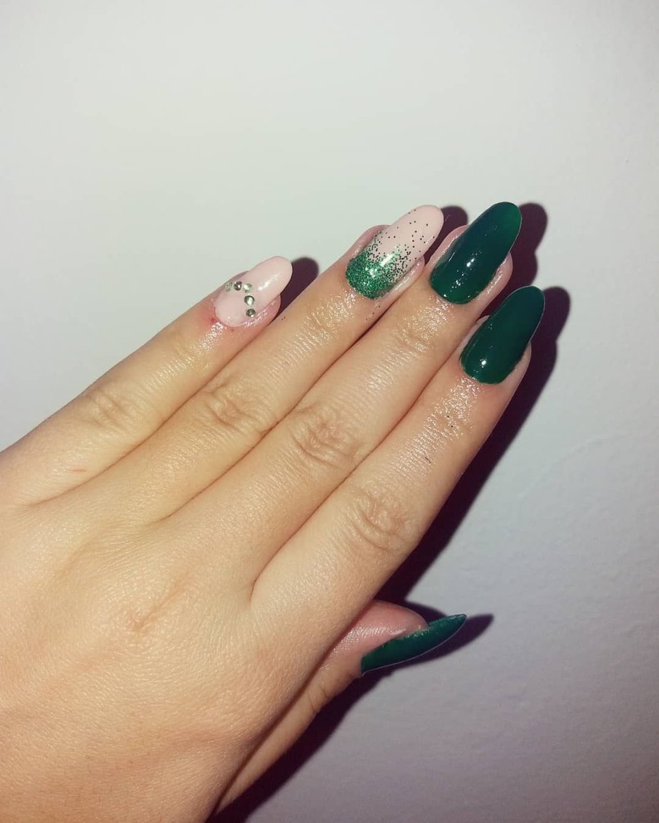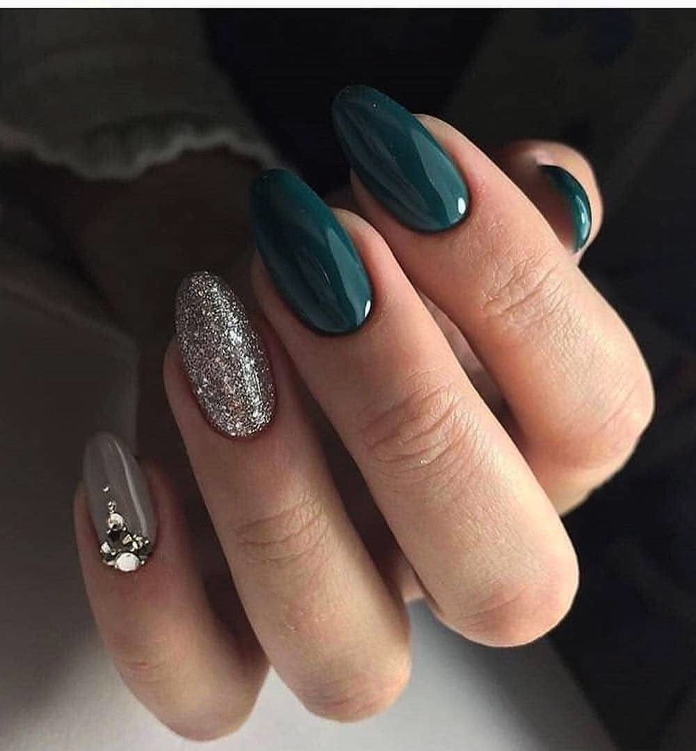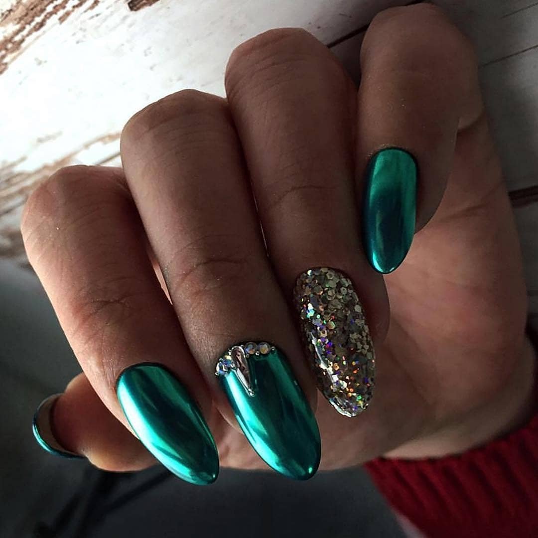 Изумрудный маникюр 2019 миндаль