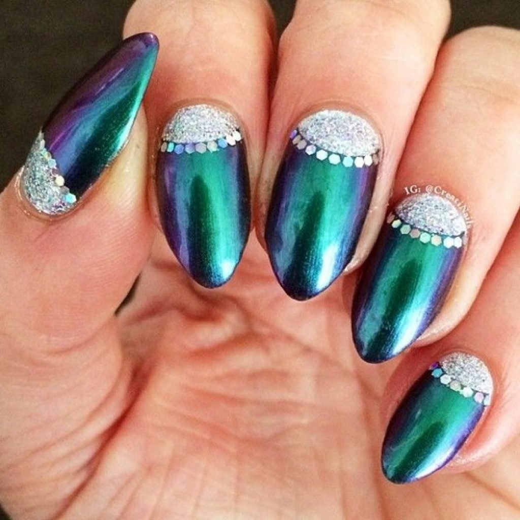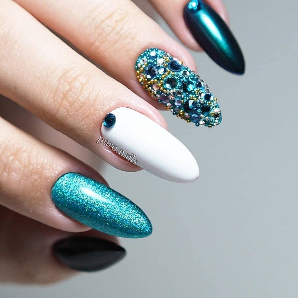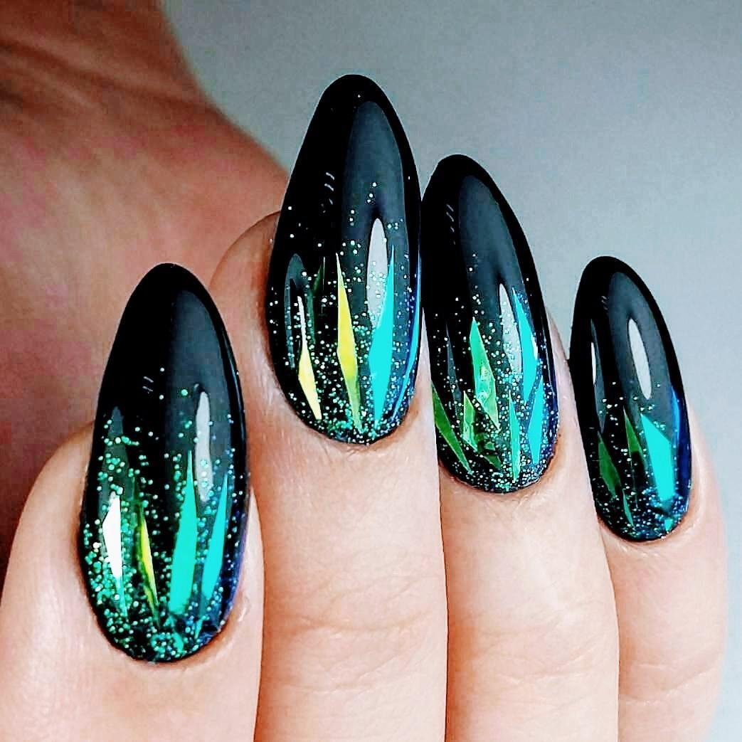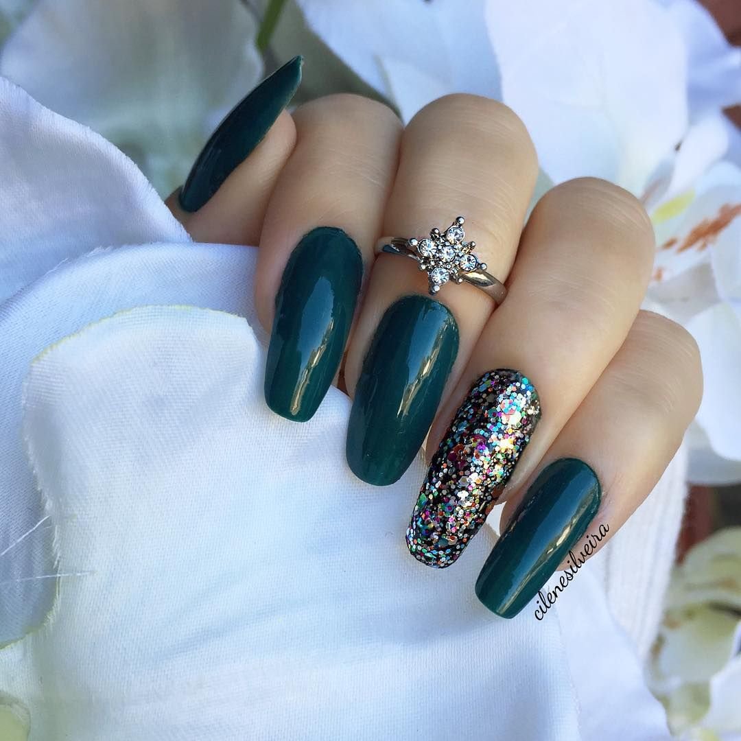Изумрудный маникюр 2019 миндаль