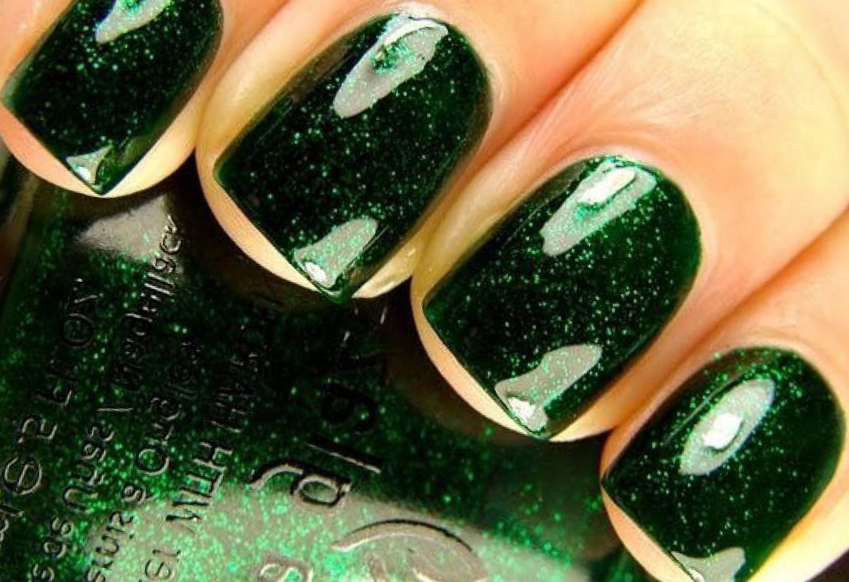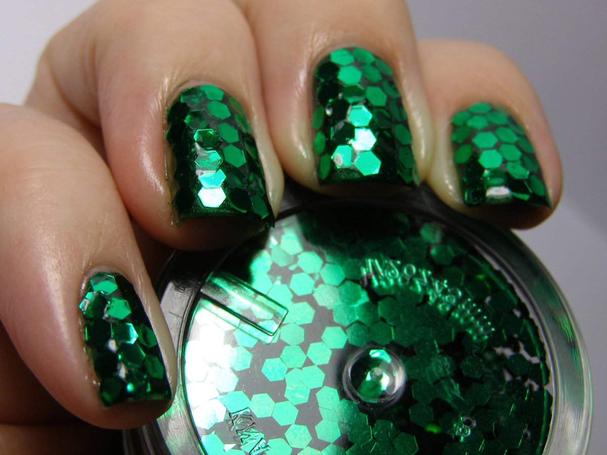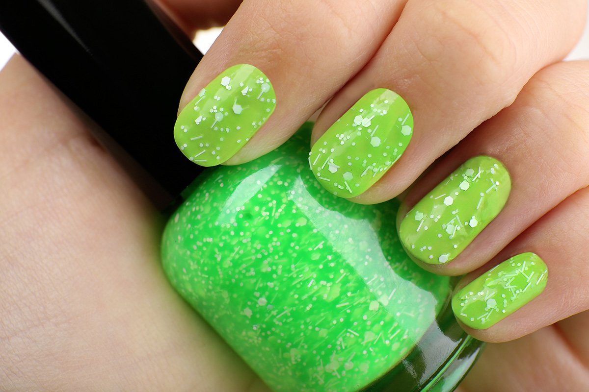Зеленый лак с блестками