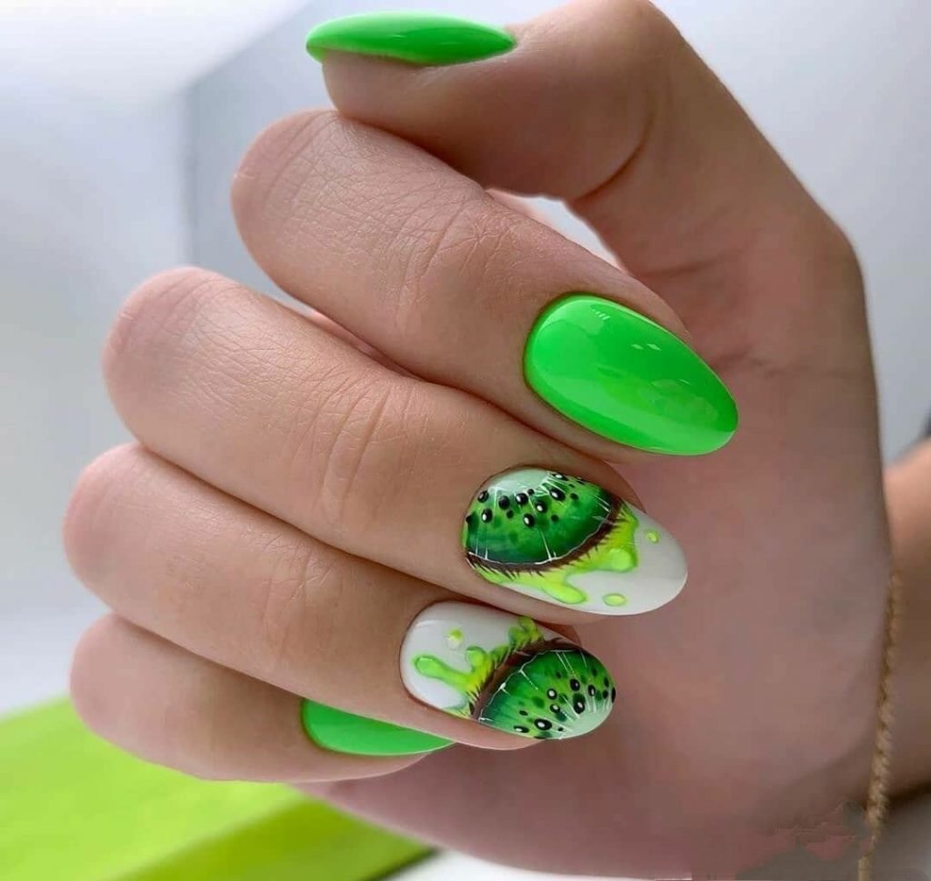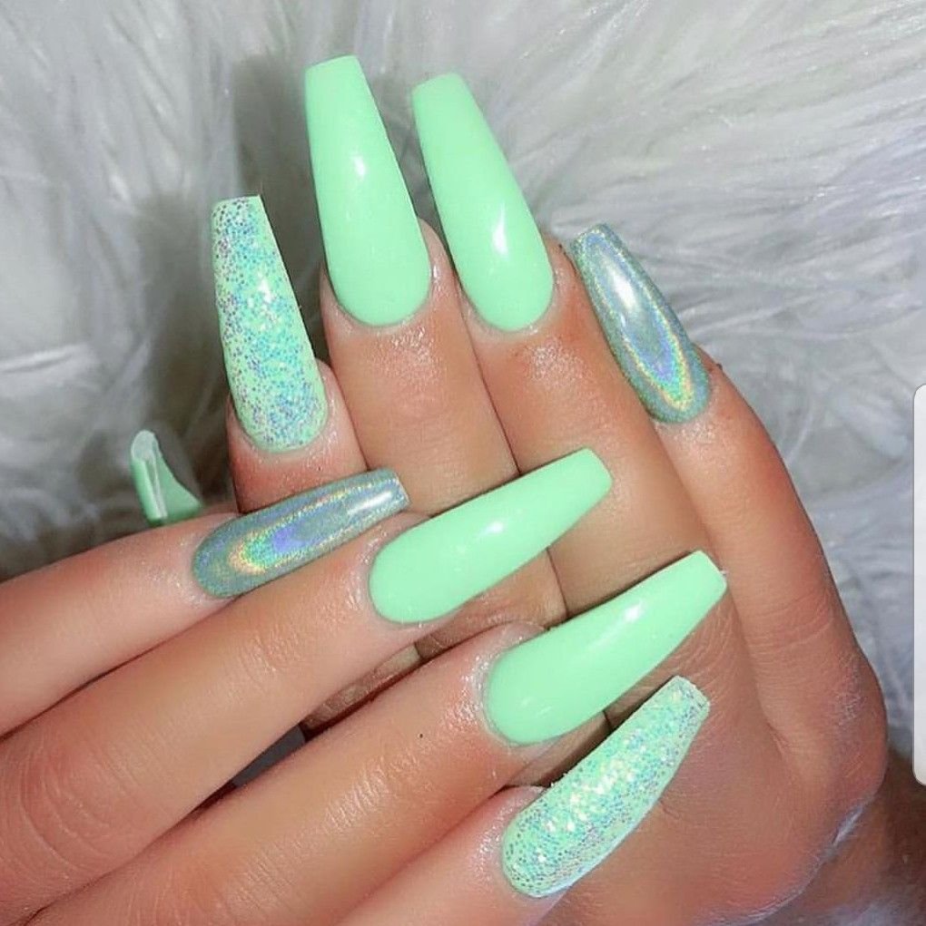 Салатовые ногти острые