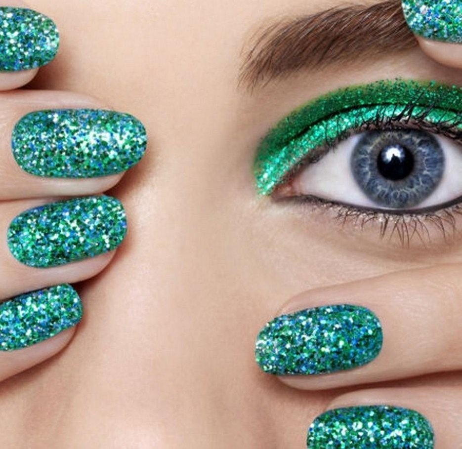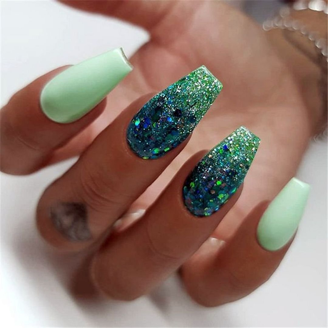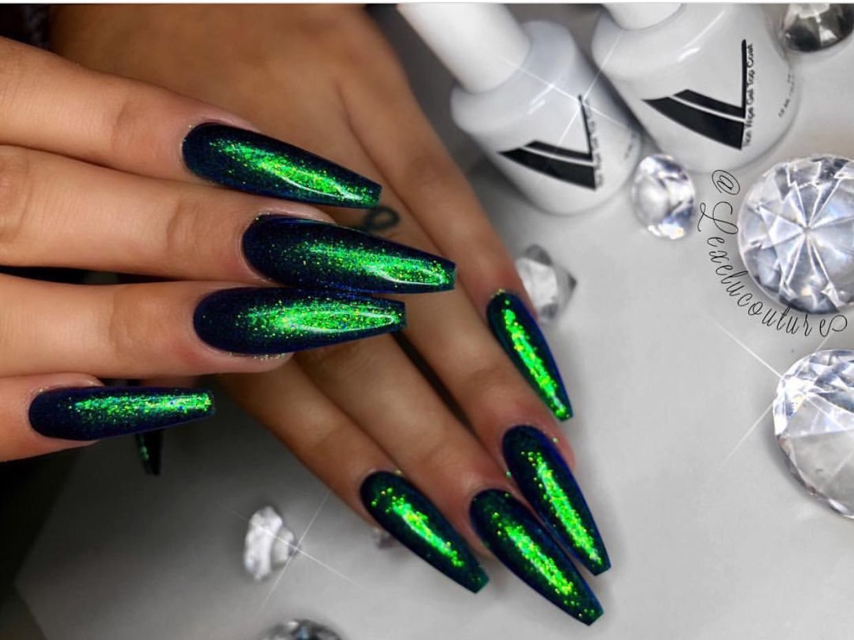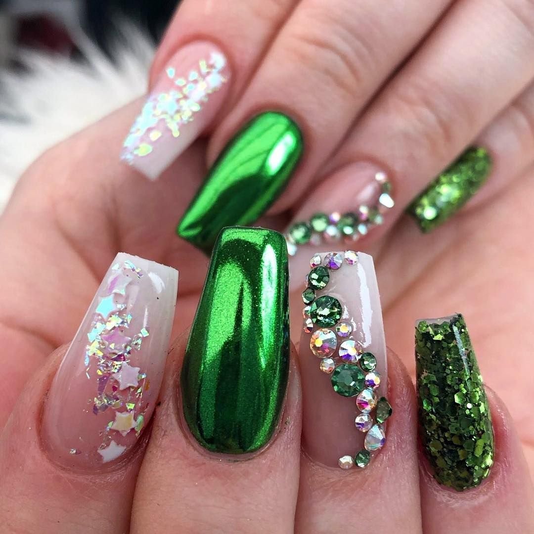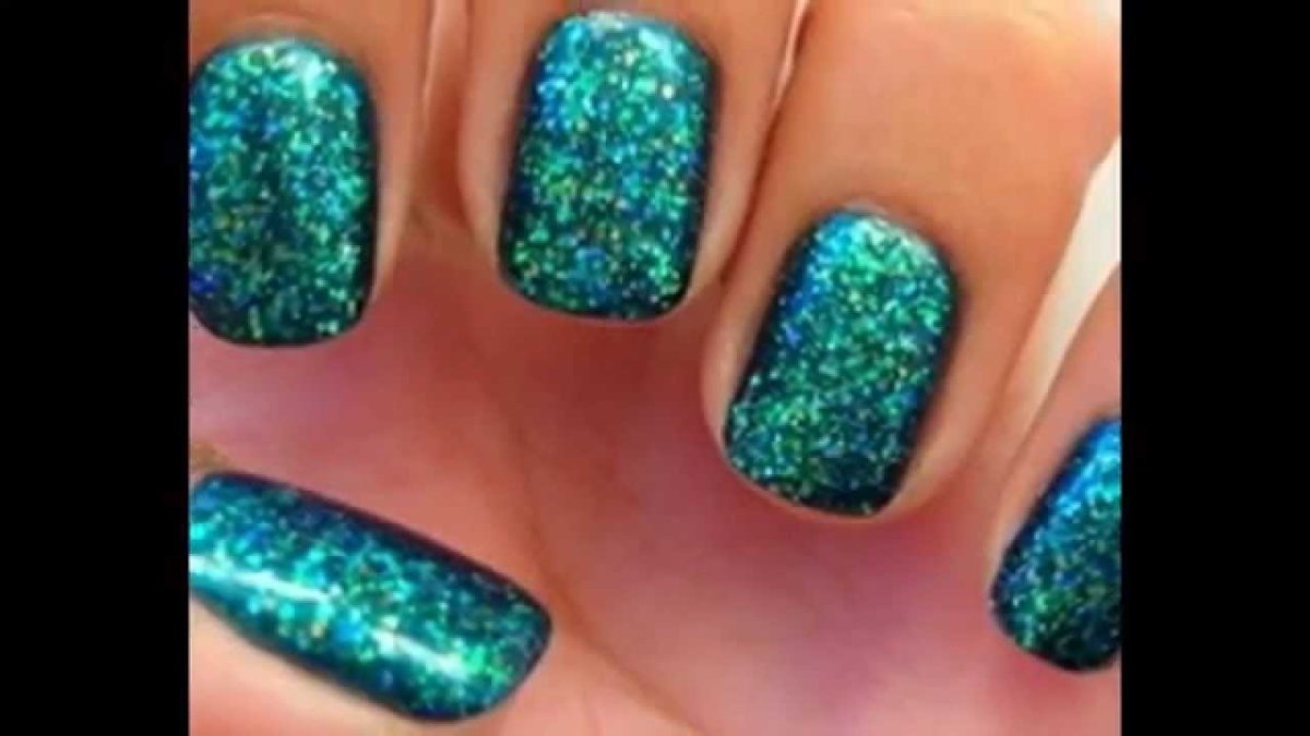 Ногти зелёные с блестками