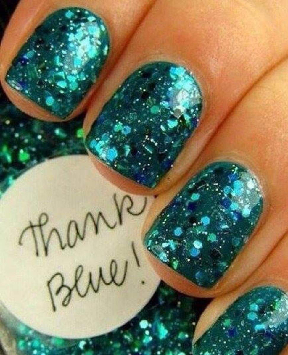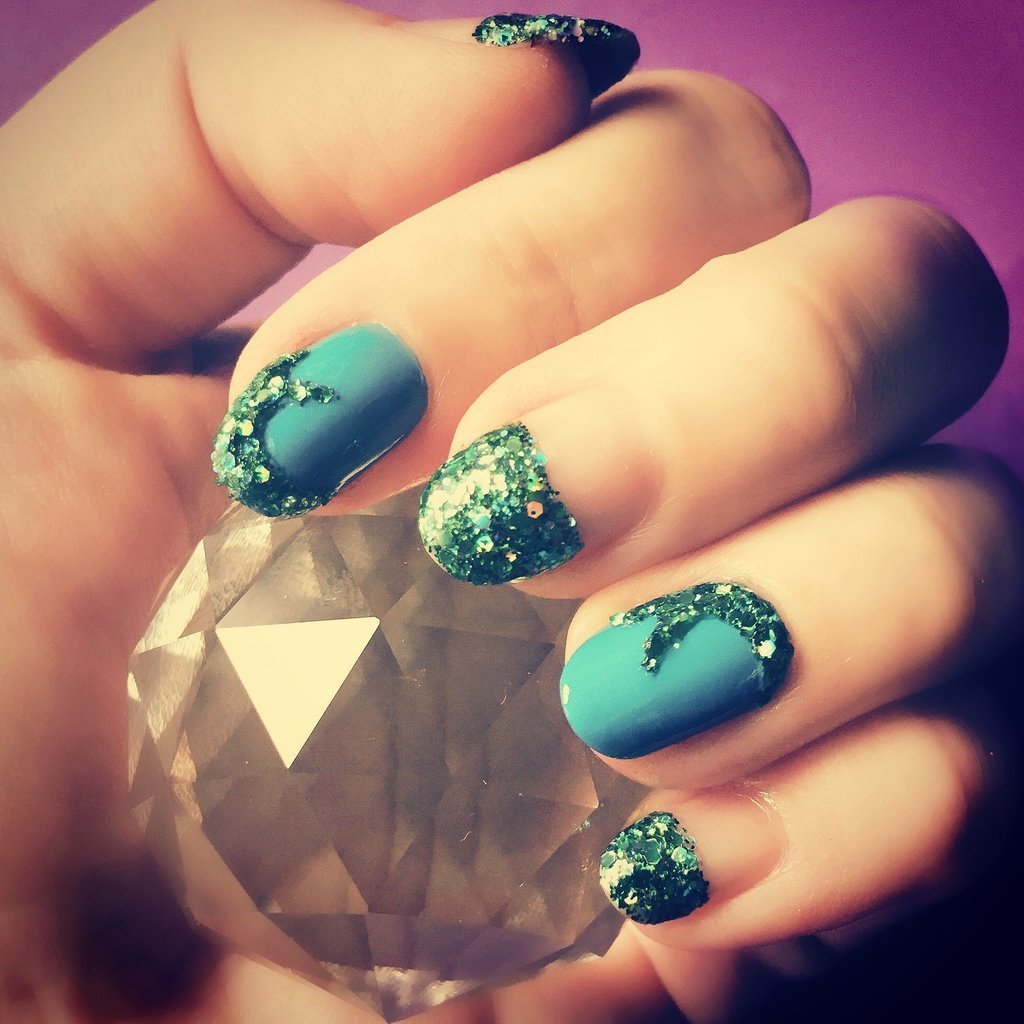 Темно бирюзовые ногти с блестками