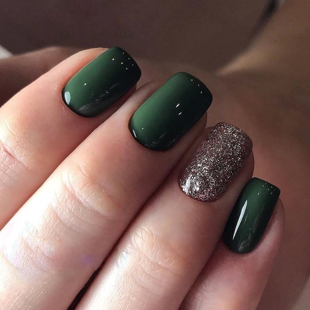 Тёмно-зелёный маникюр