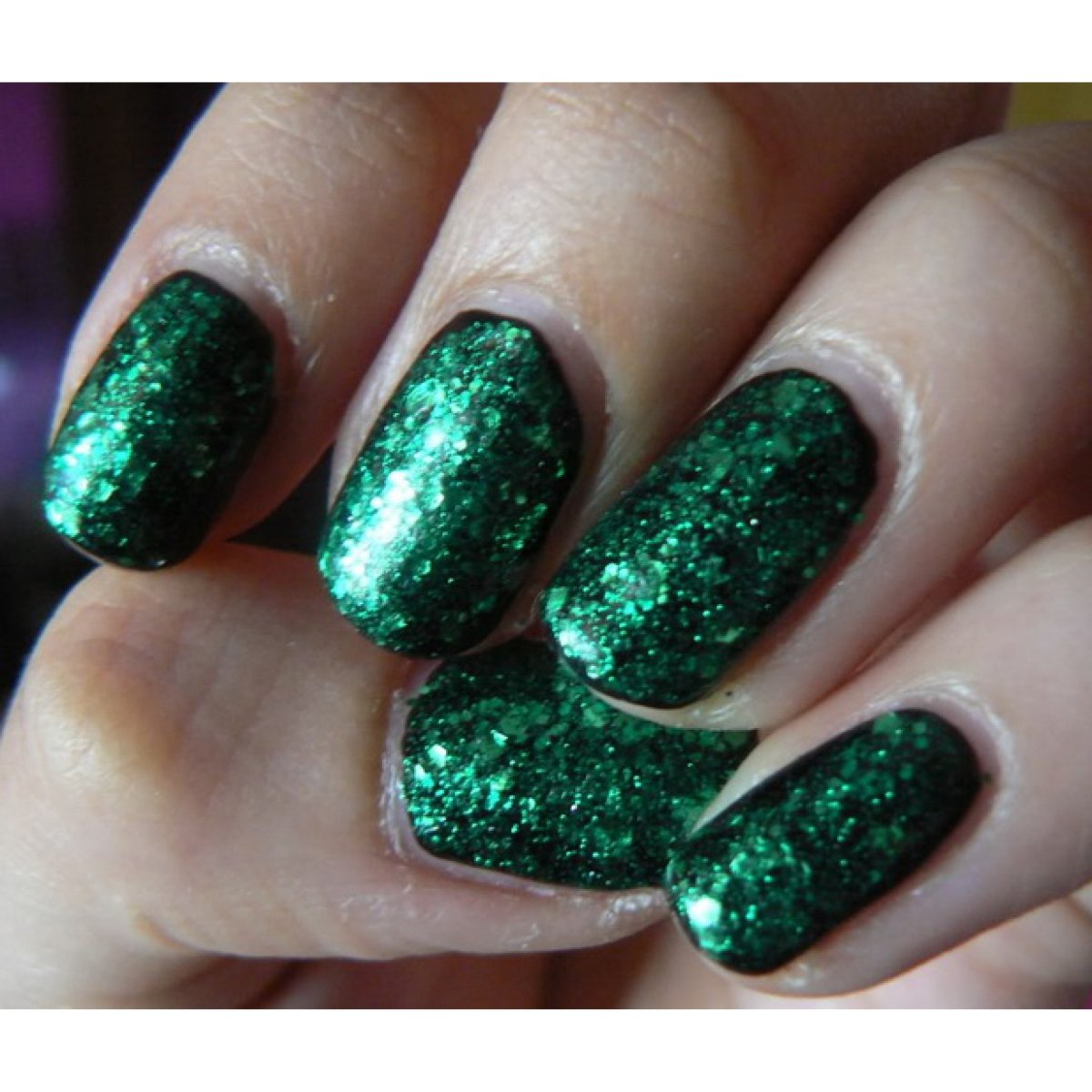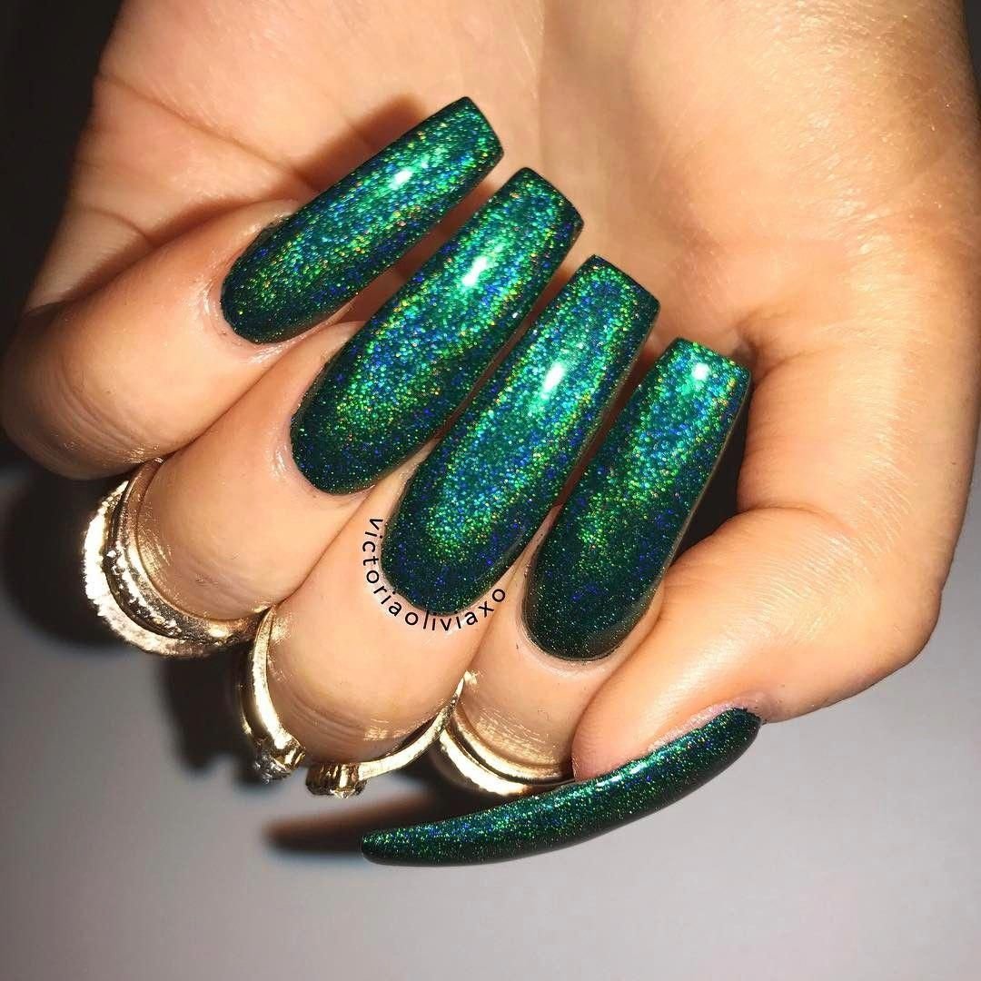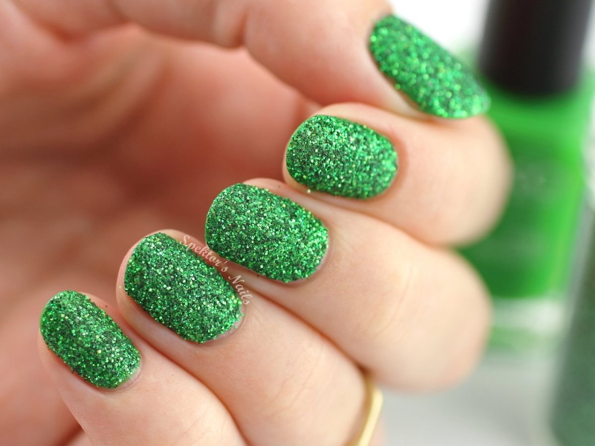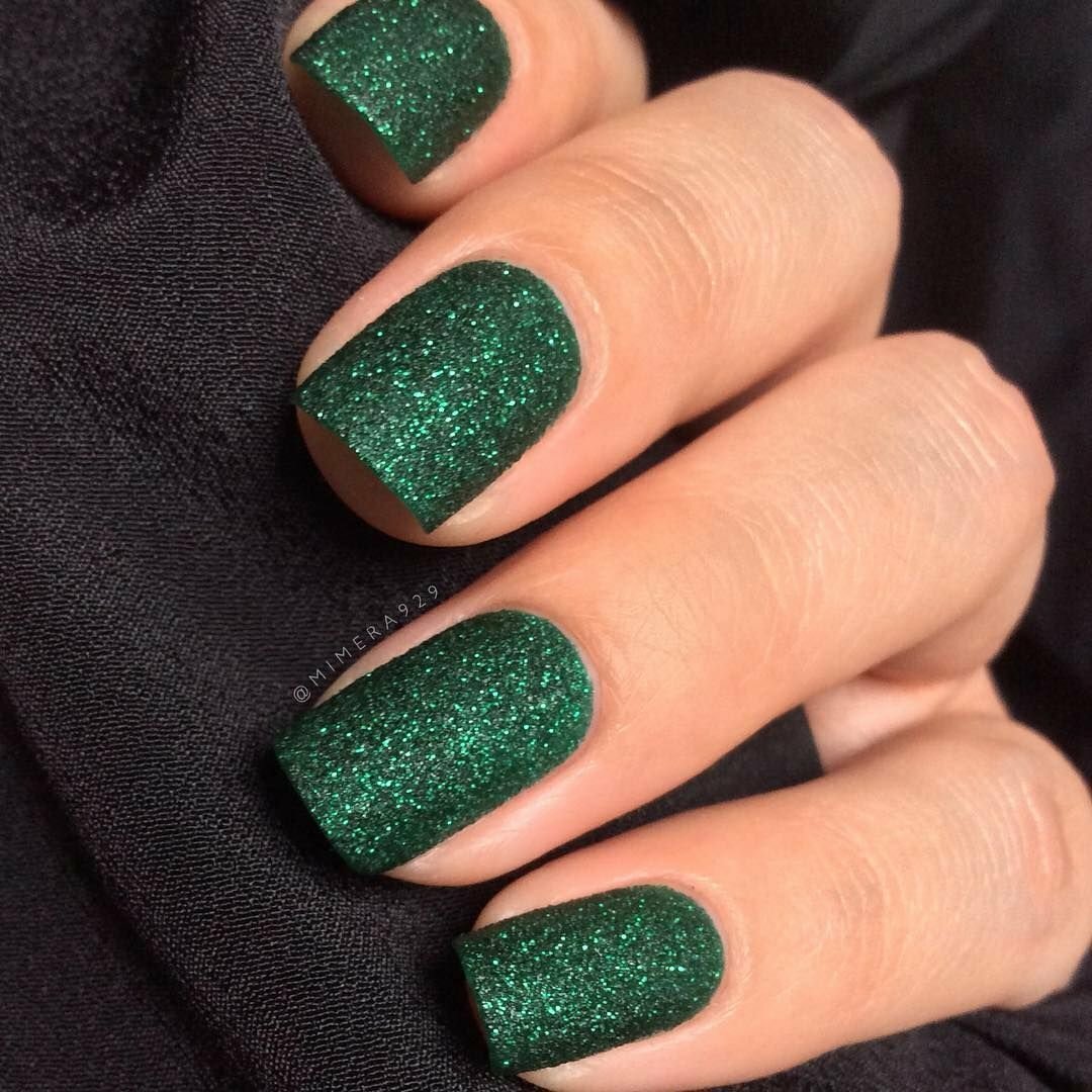 Изумрудный глиттерный маникюр