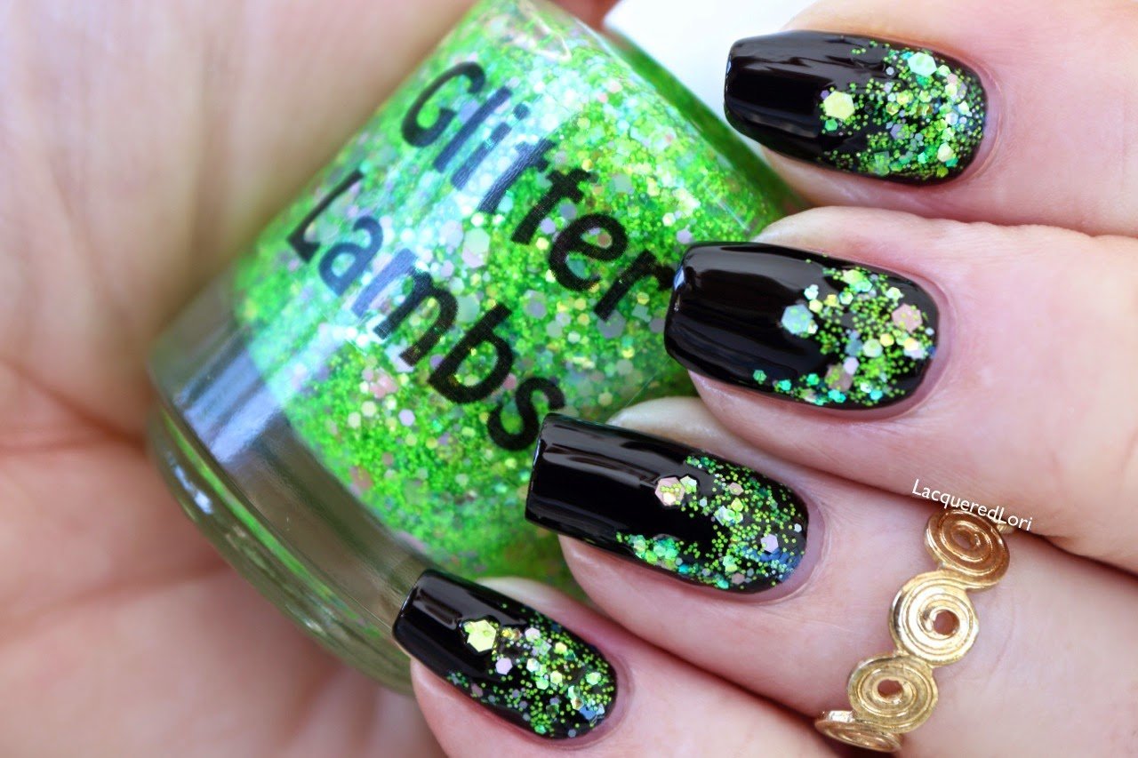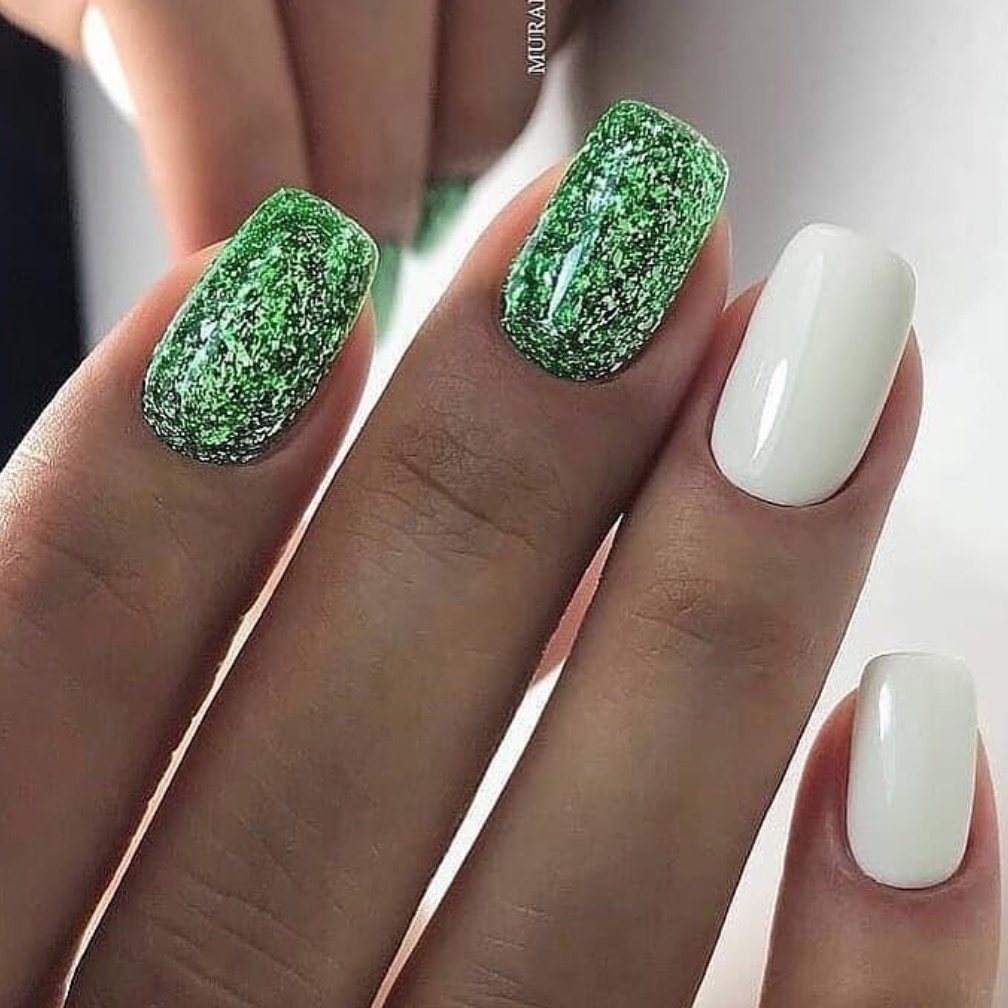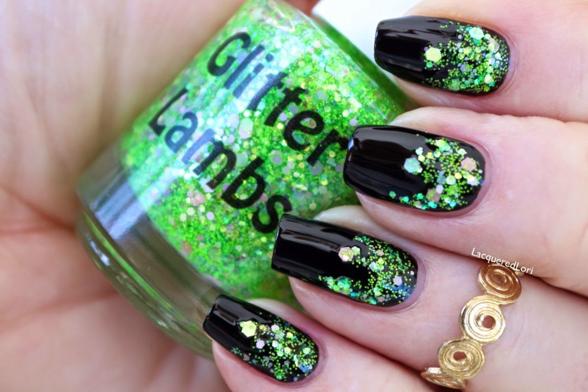 Маникюр с зелеными блестками