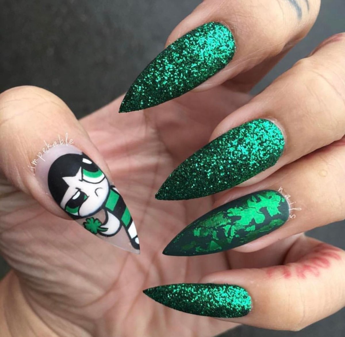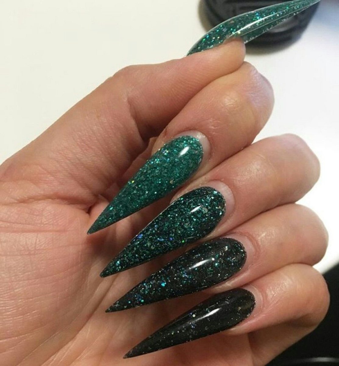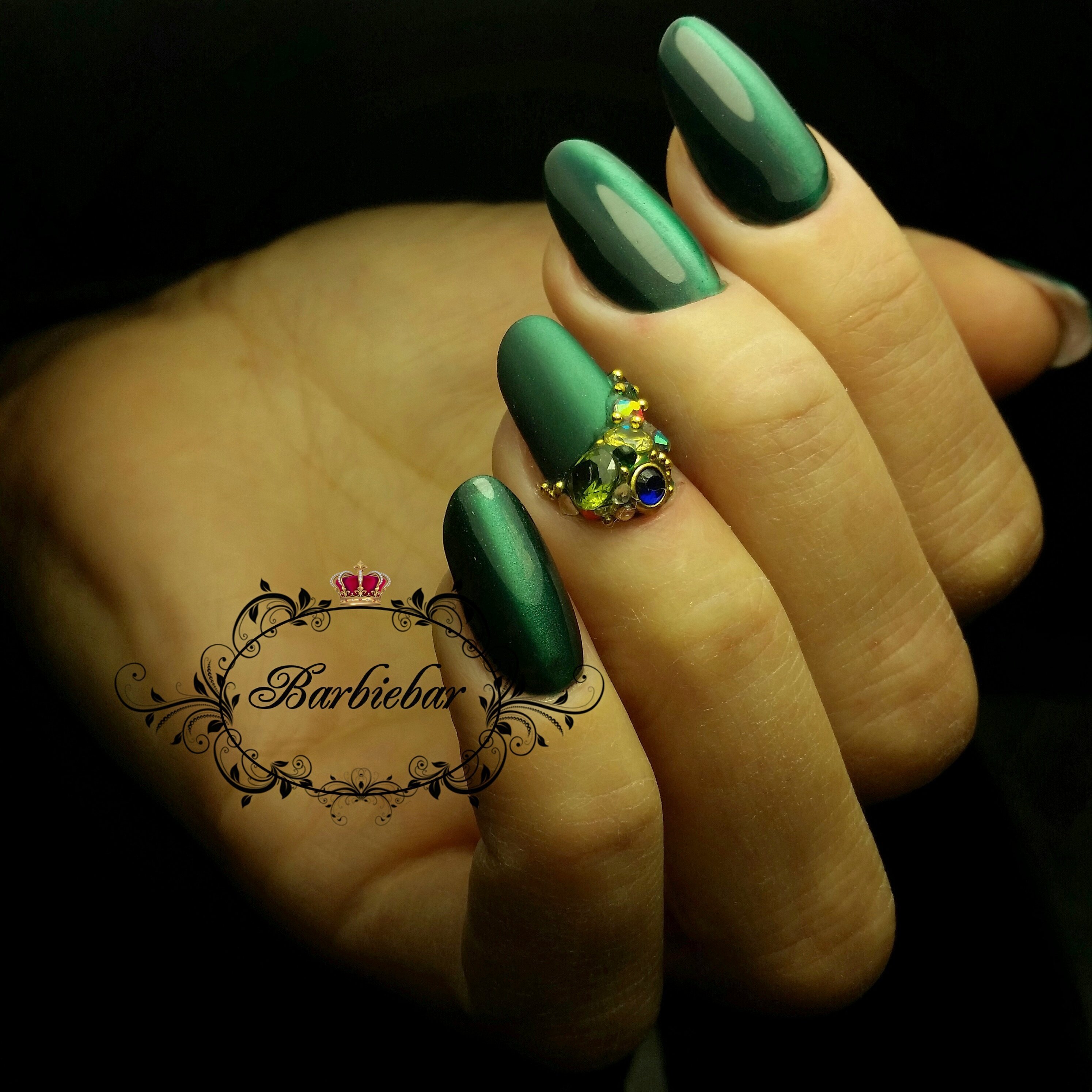 Изумрудный маникюр стилет