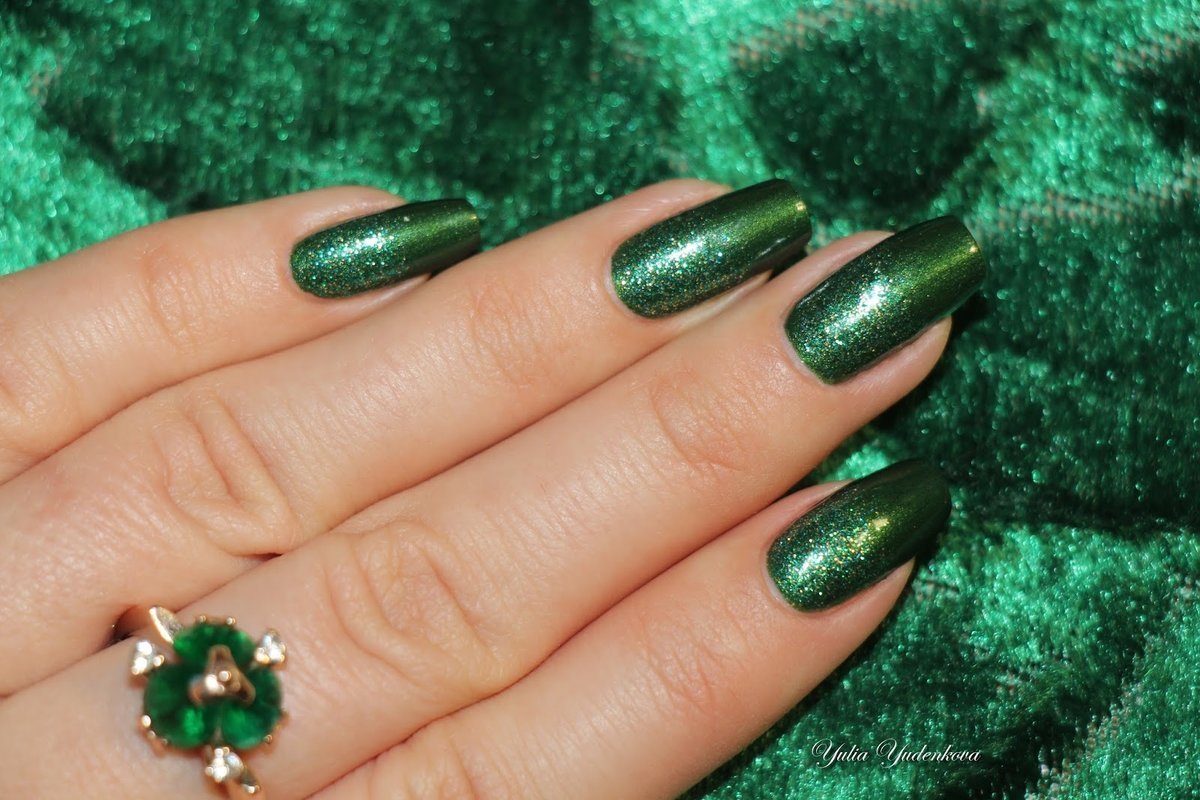 Изумрудный маникюр с шиммером
