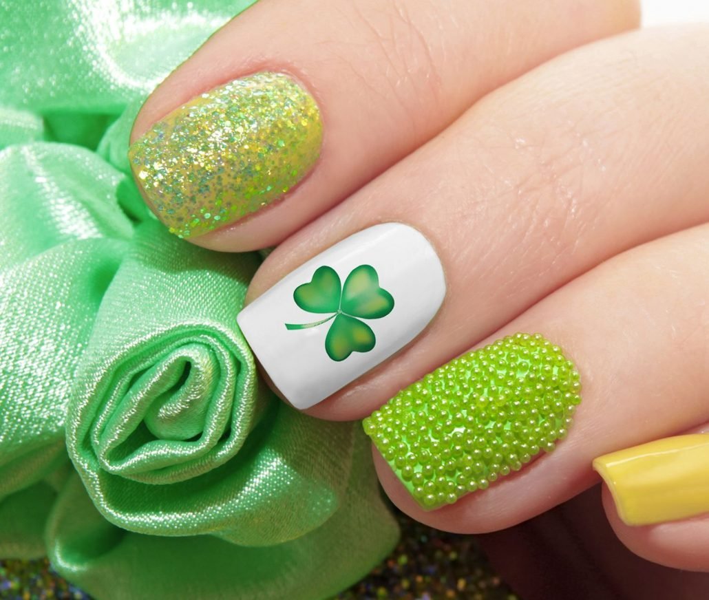 Зеленый маникюр Клевер четырехлистный