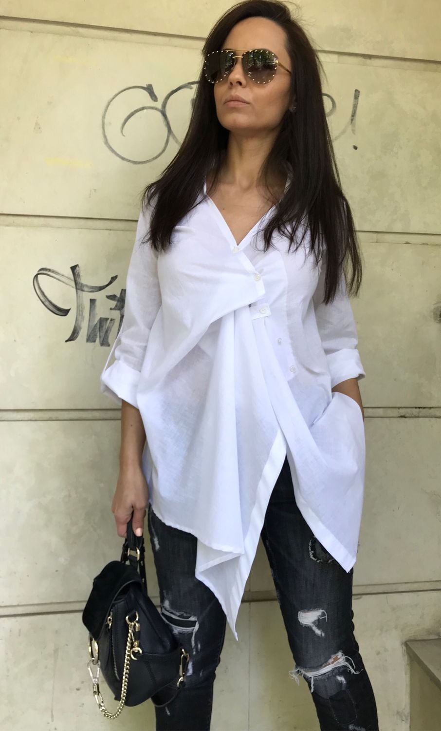 Оверсайз рубашка белая женская на АЛИЭКСПРЕСС