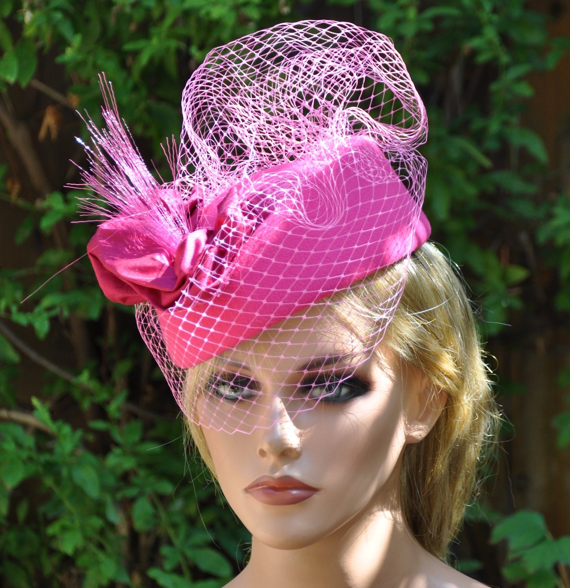 Розовая шляпка с вуалью