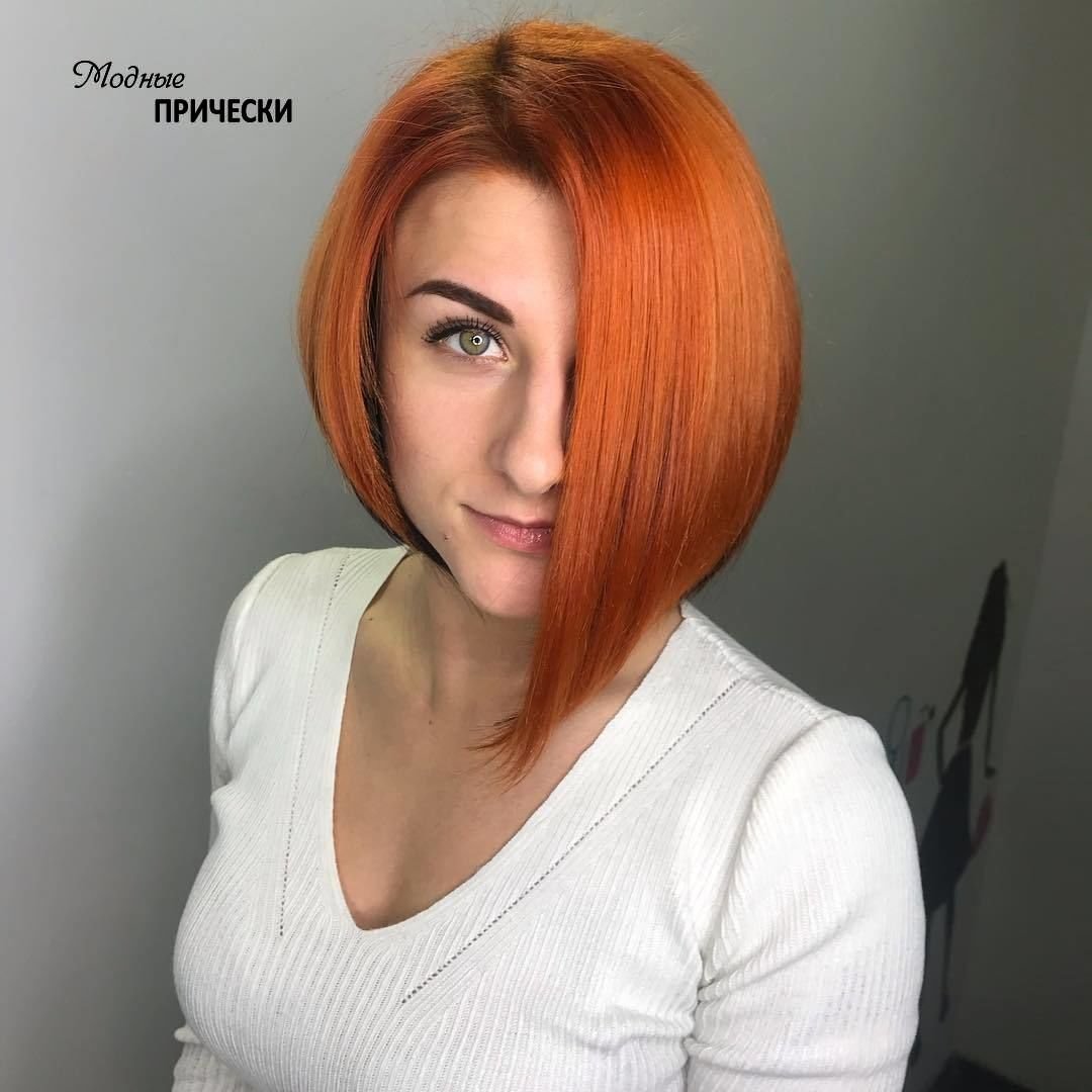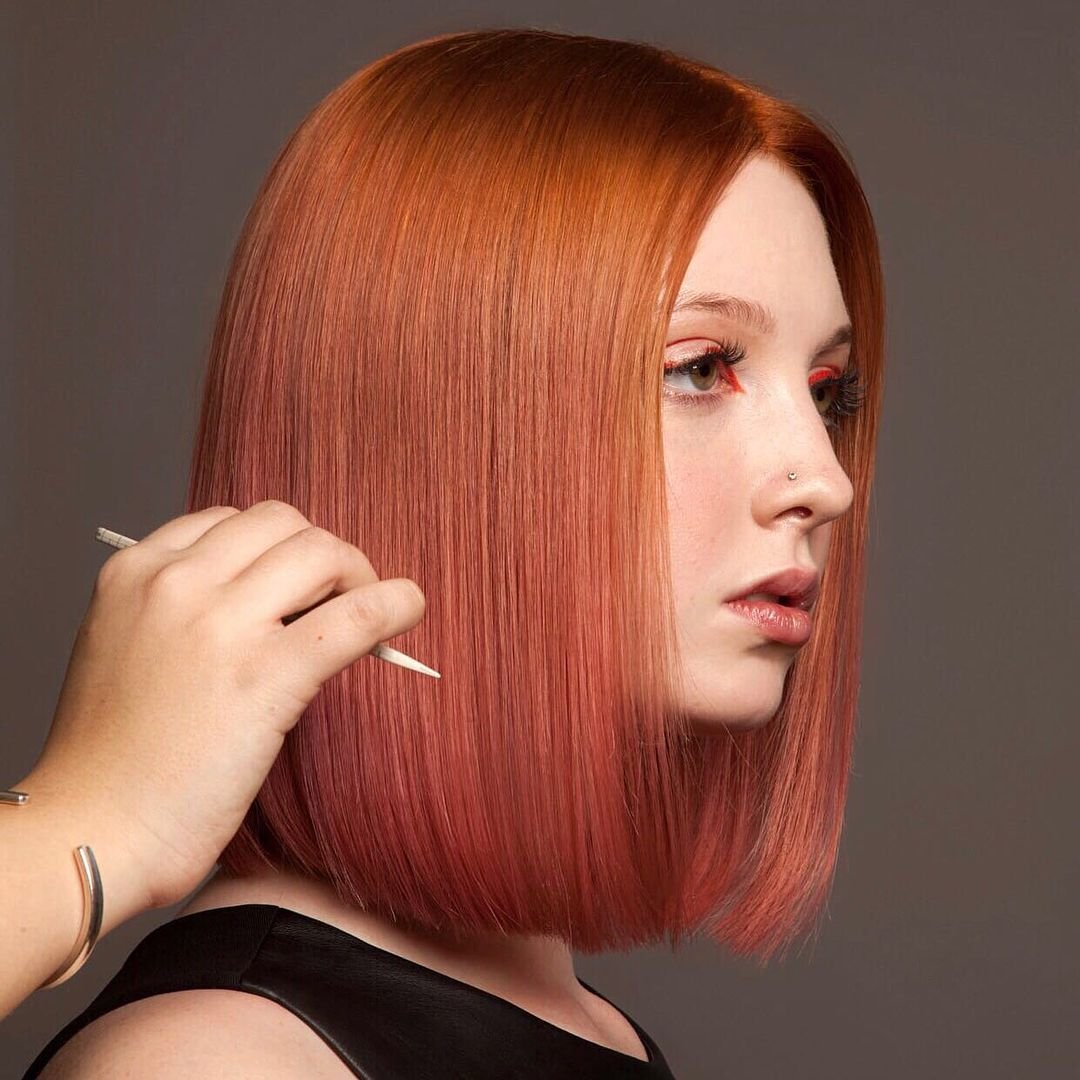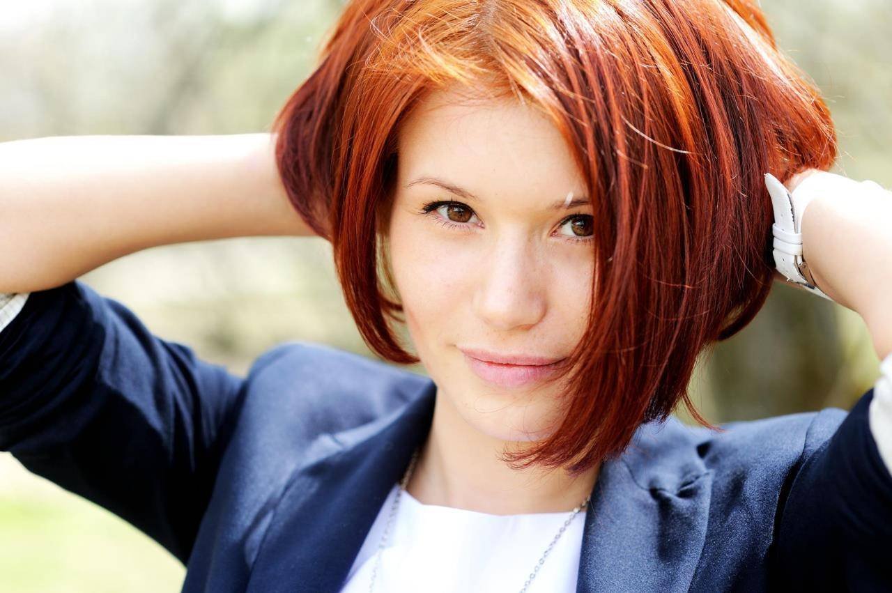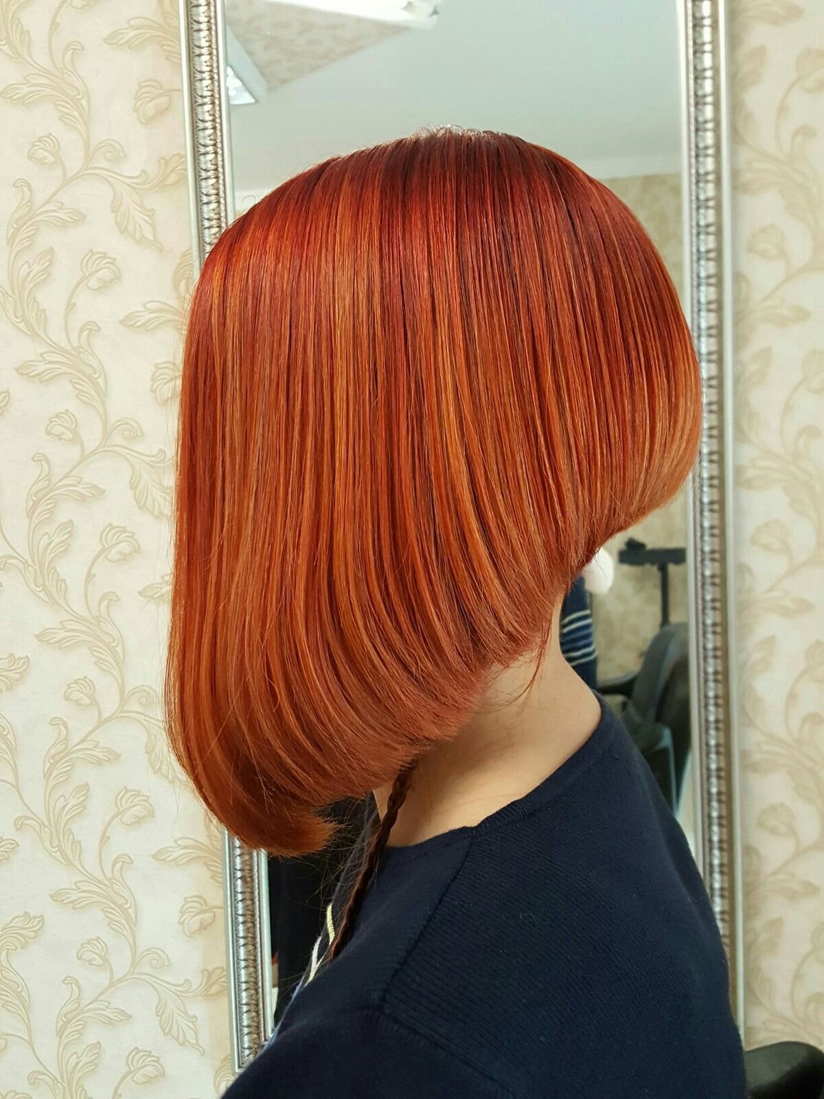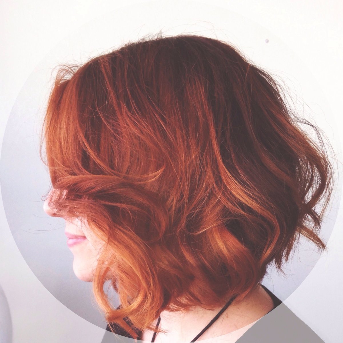 Стрижка Боб Каскад на рыжие волнистые волосы