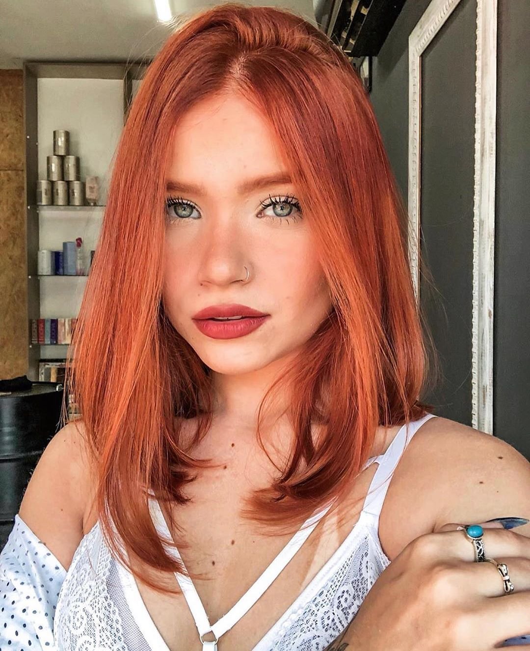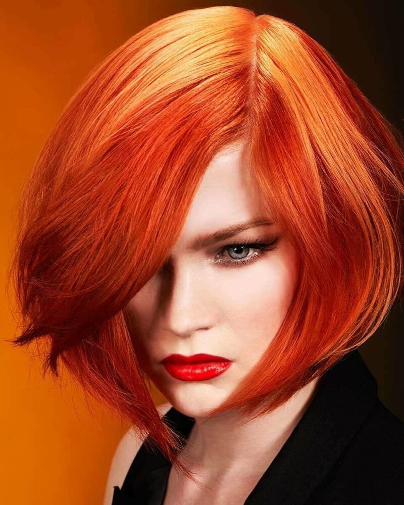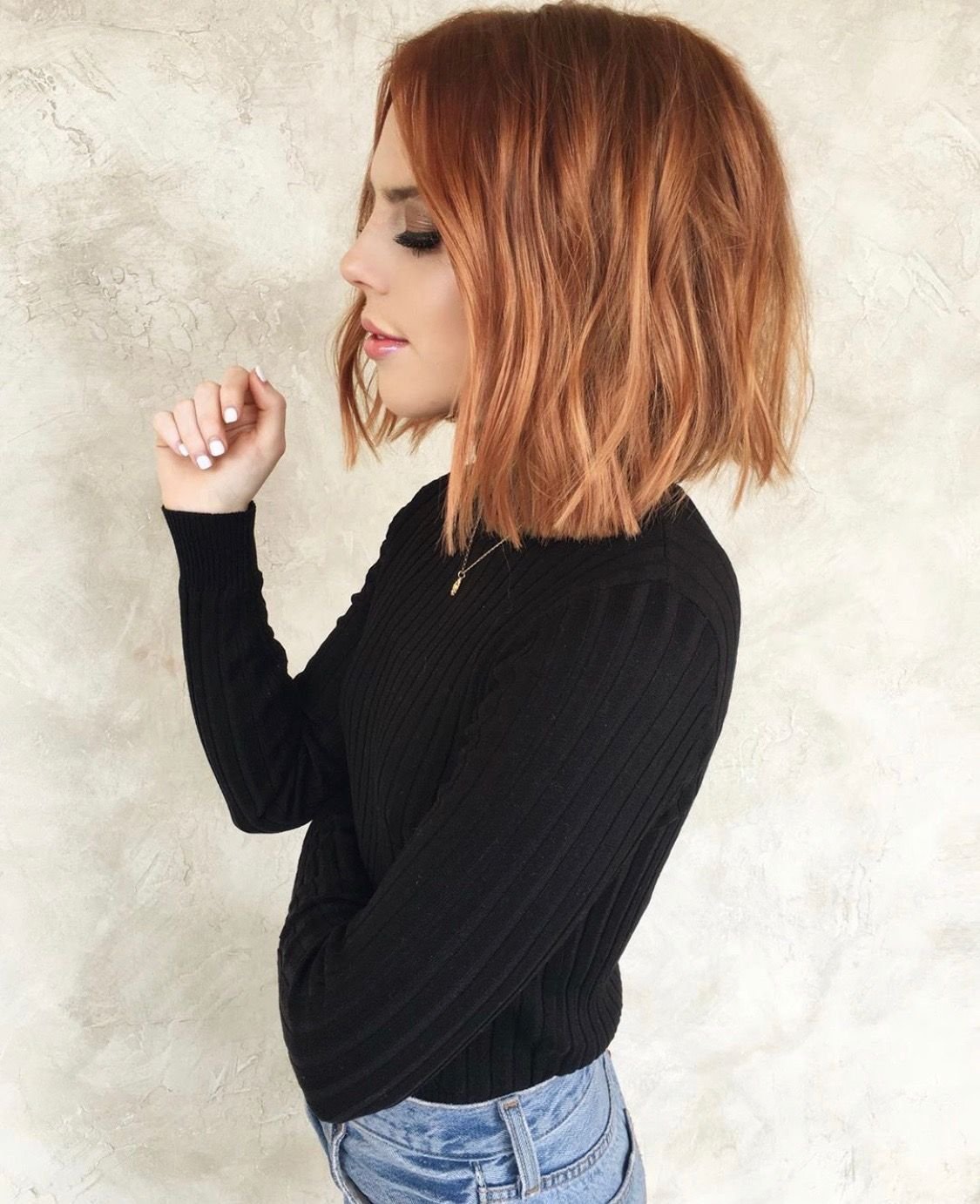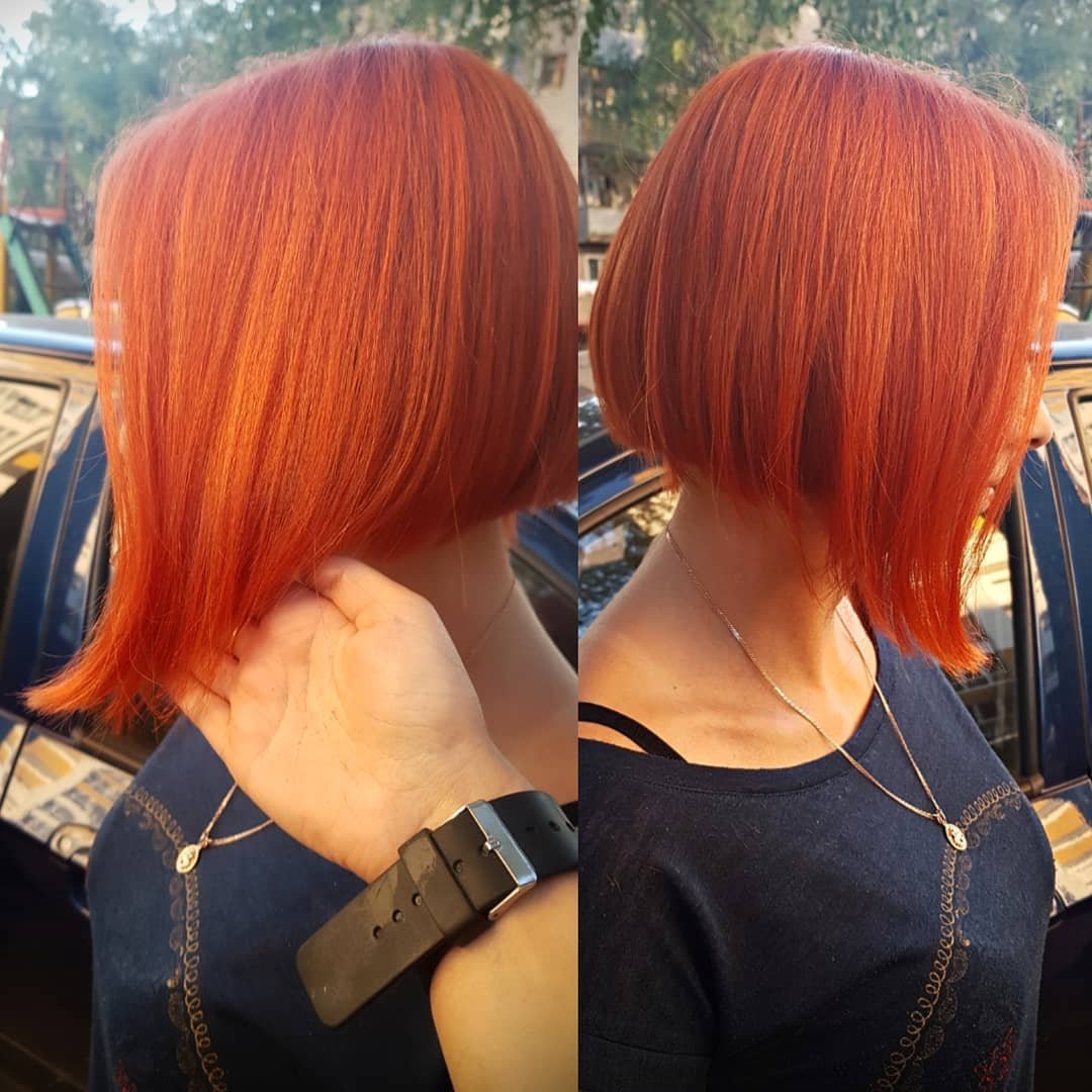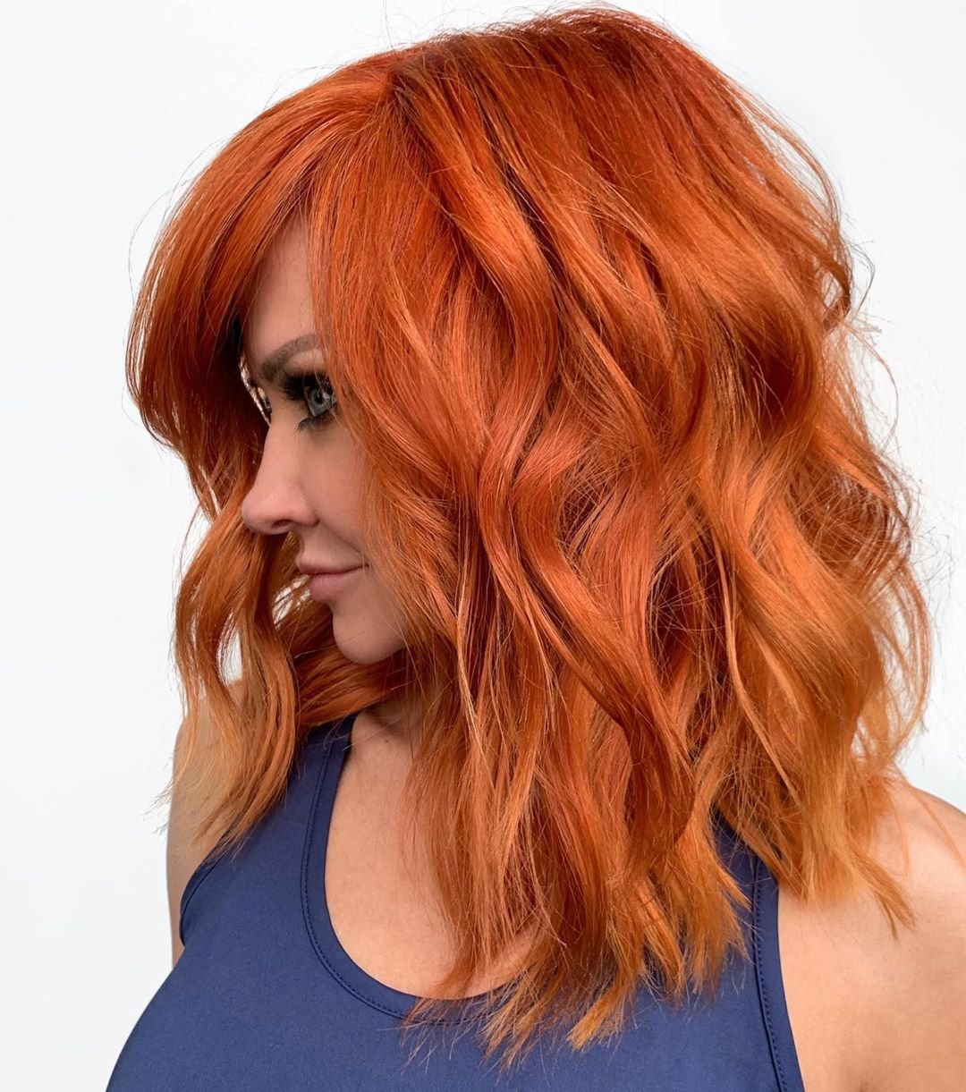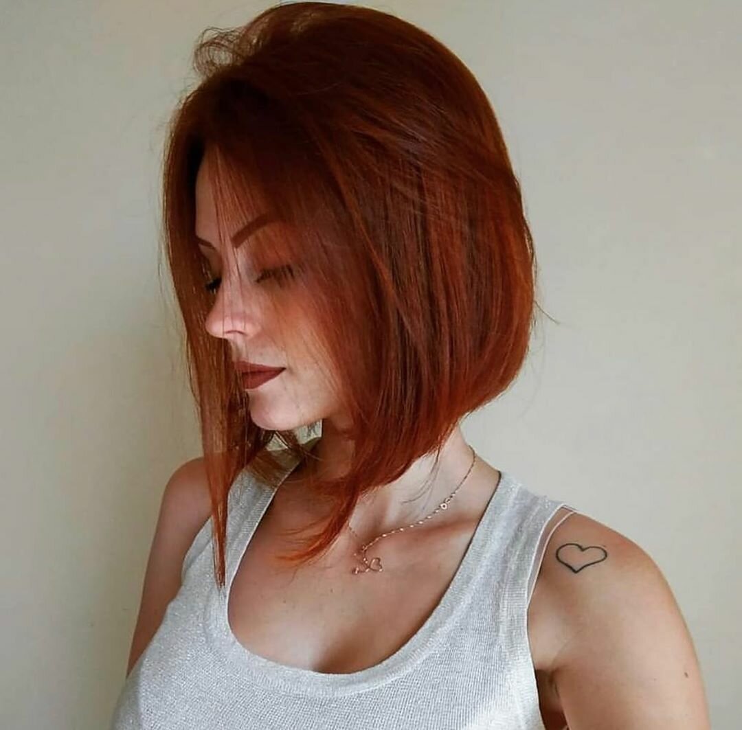Стрижка Боб Каскад на рыжие волнистые волосы