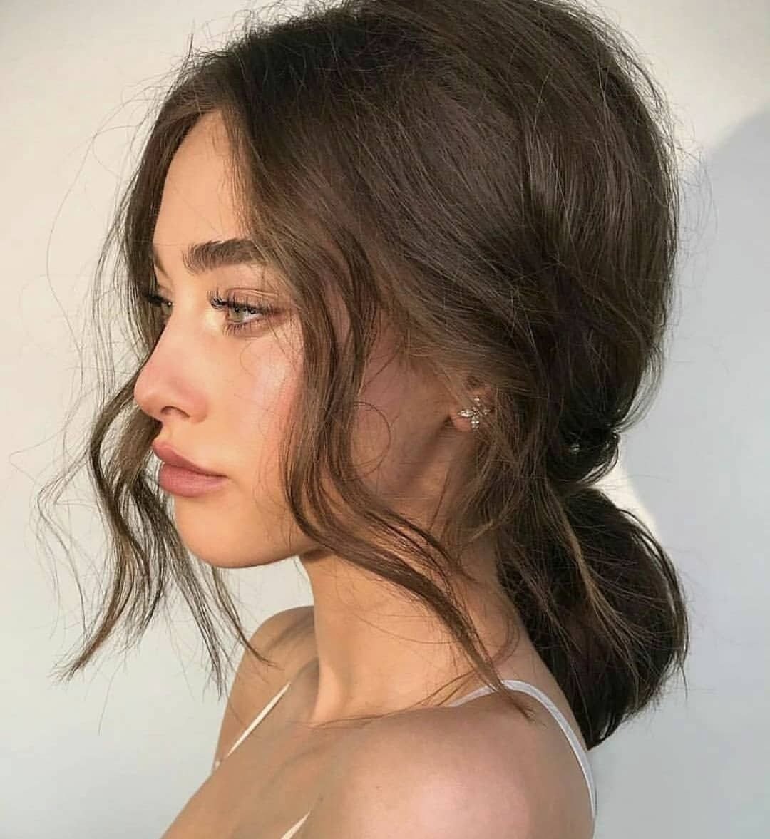Небрежный пучок на темных волосах