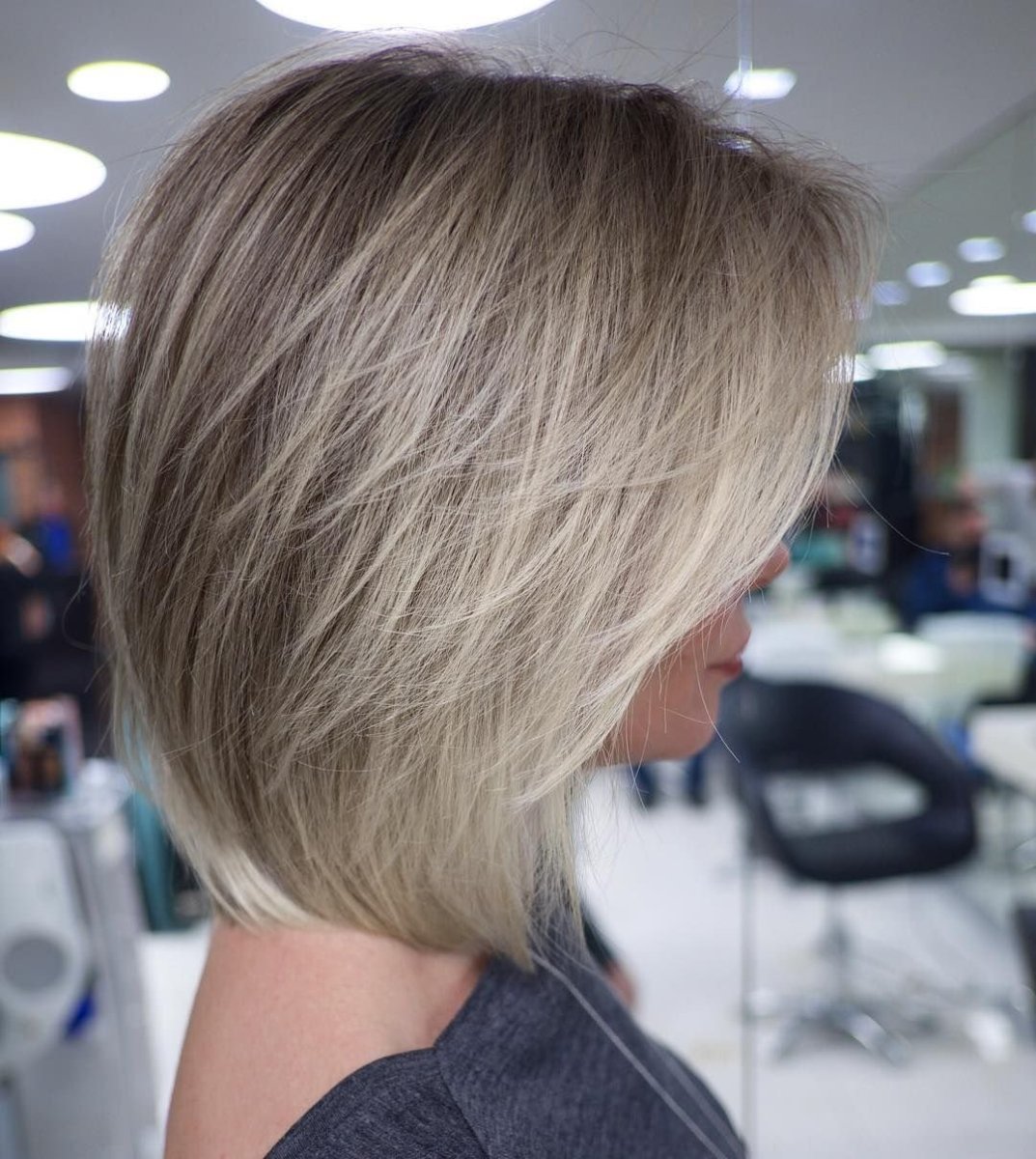 Удлиненное градуированное каре с челкой и объемом на макушке