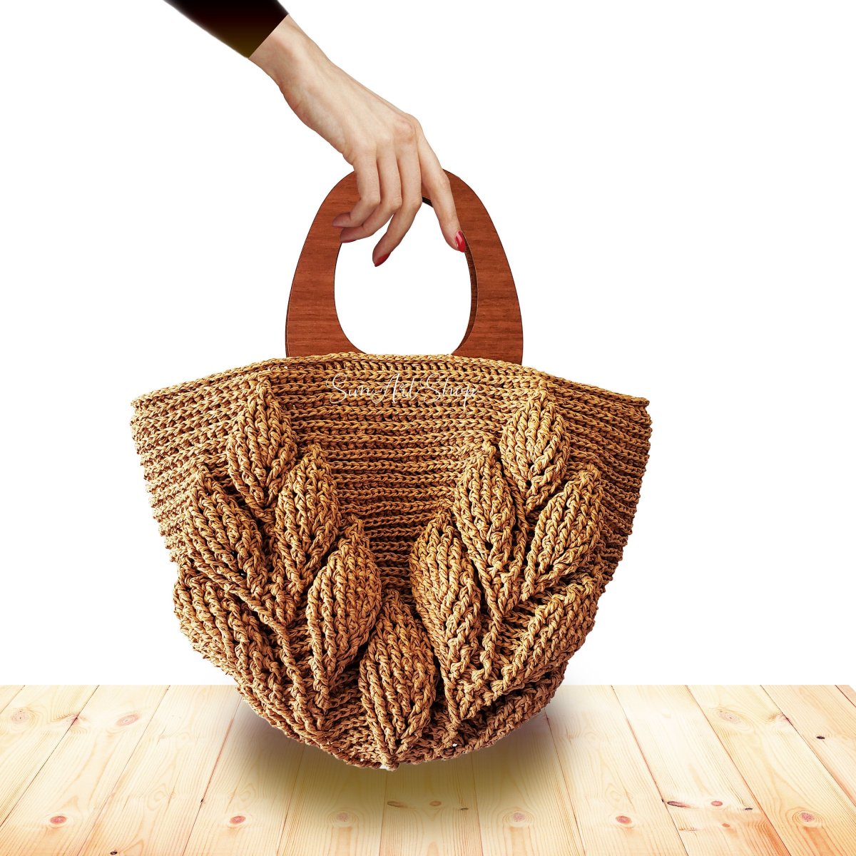Сумка крючком с деревянными ручками