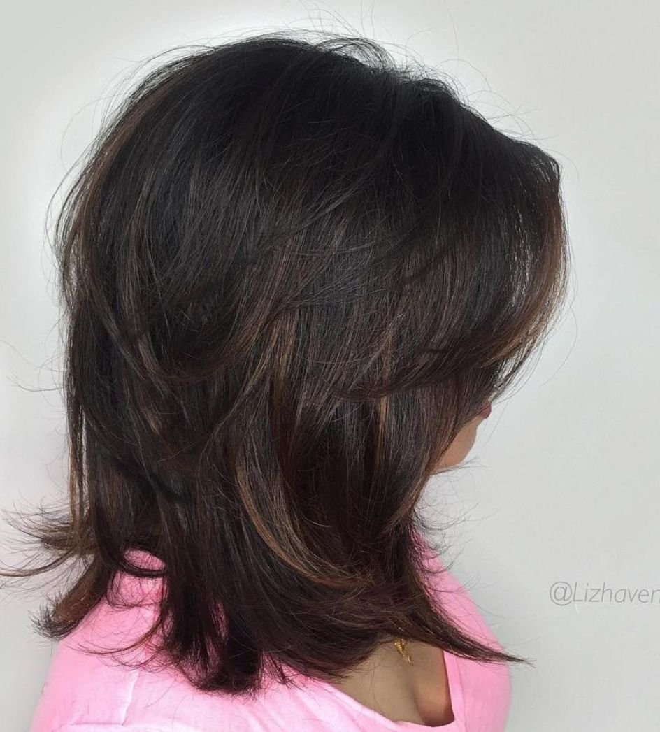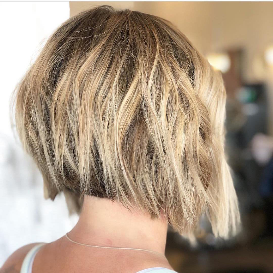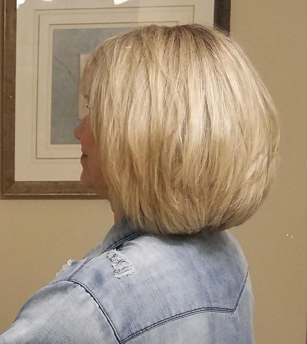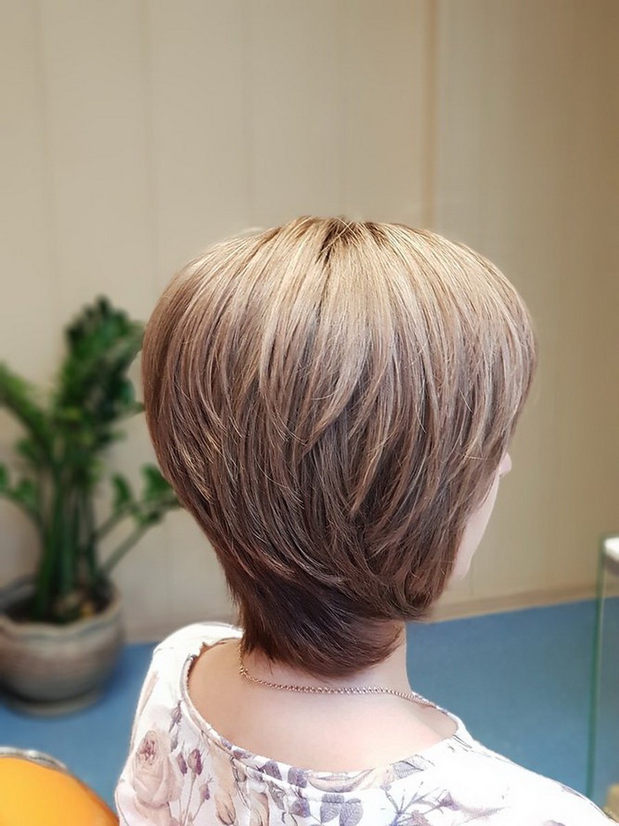 Удлиненное градуированное каре с челкой и объемом на макушке