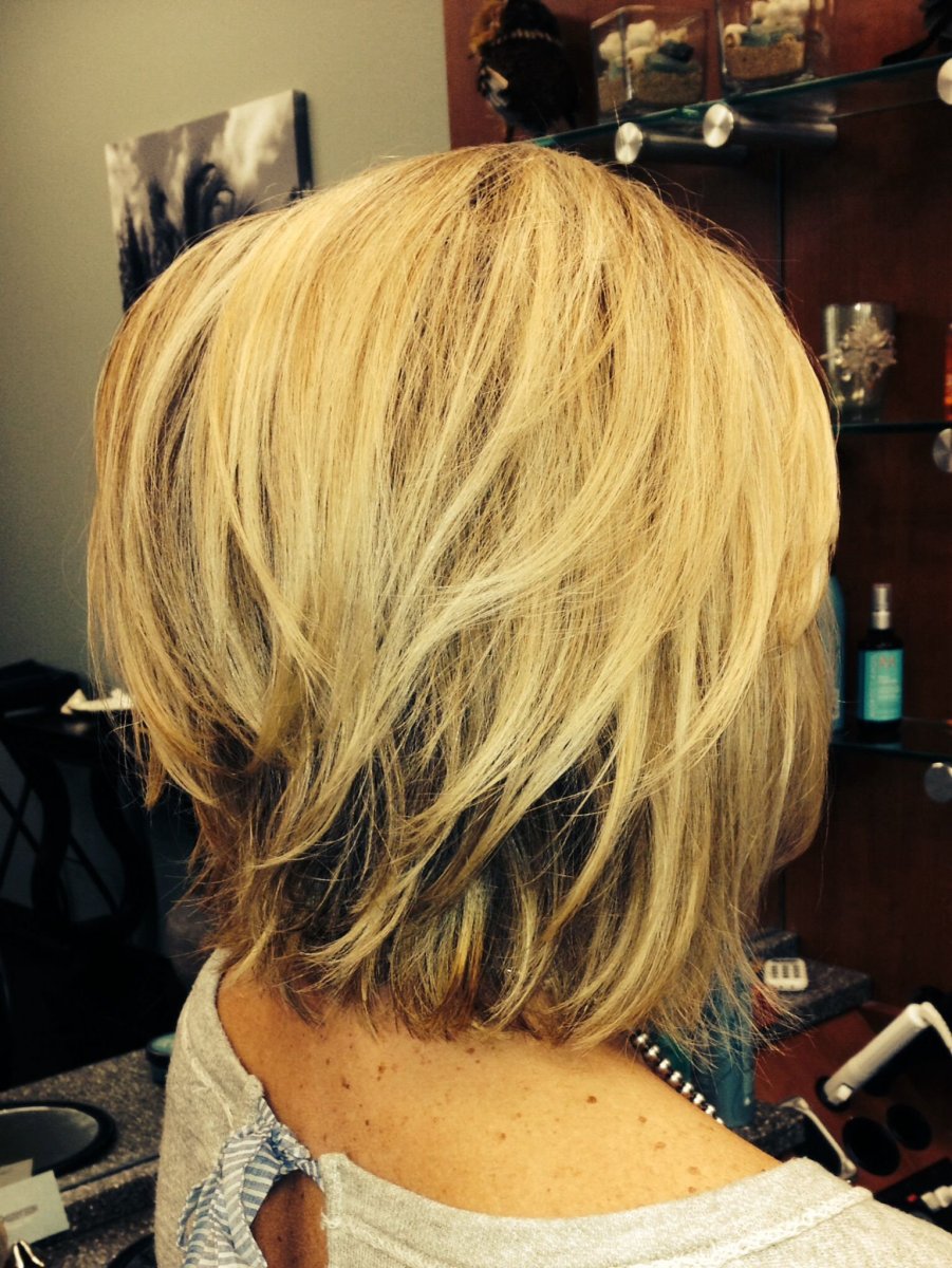 Каре-Каскад на средние волосы вид сзади и сбоку