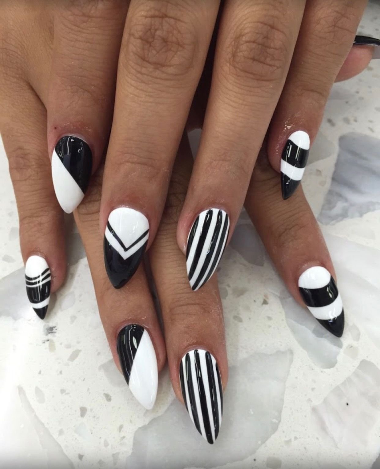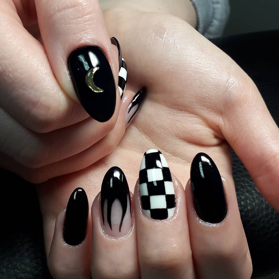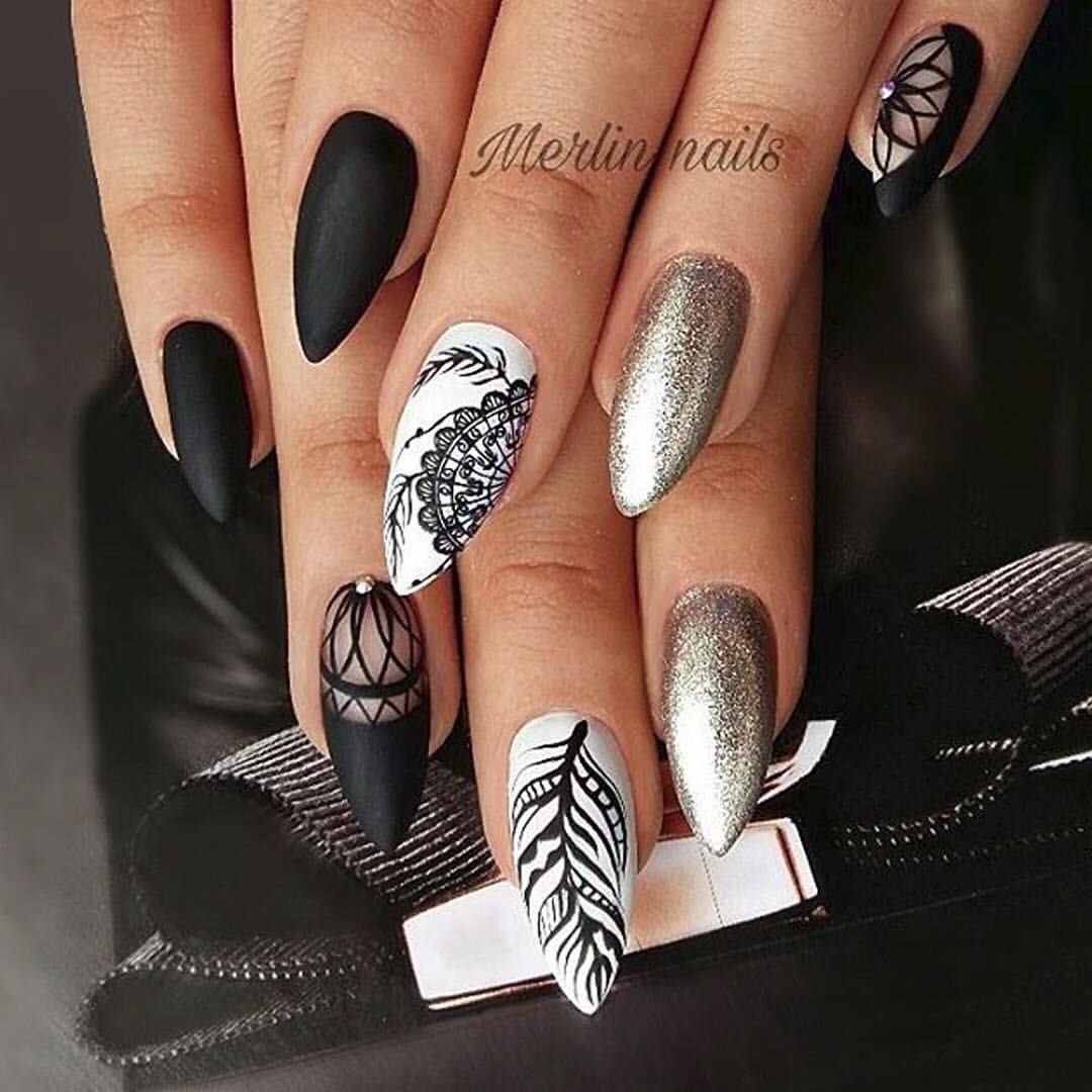 Черно белые ногти острые