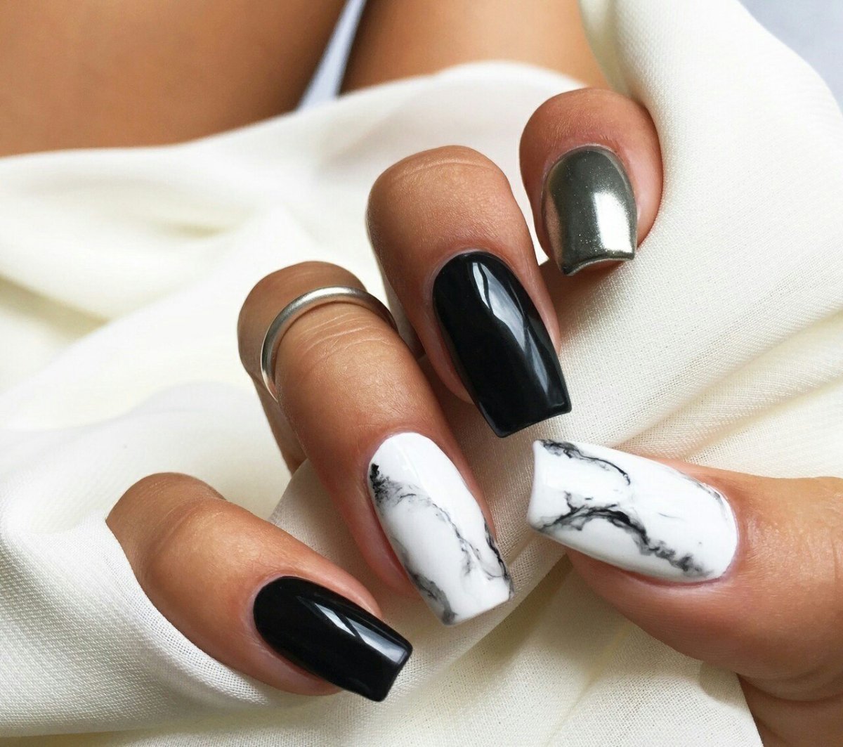 Красивый маникюр черно белый