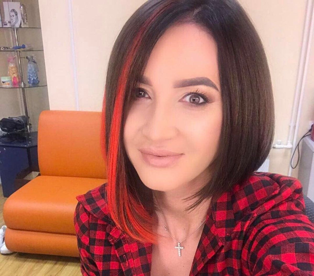 Каре с яркими прядями у лица
