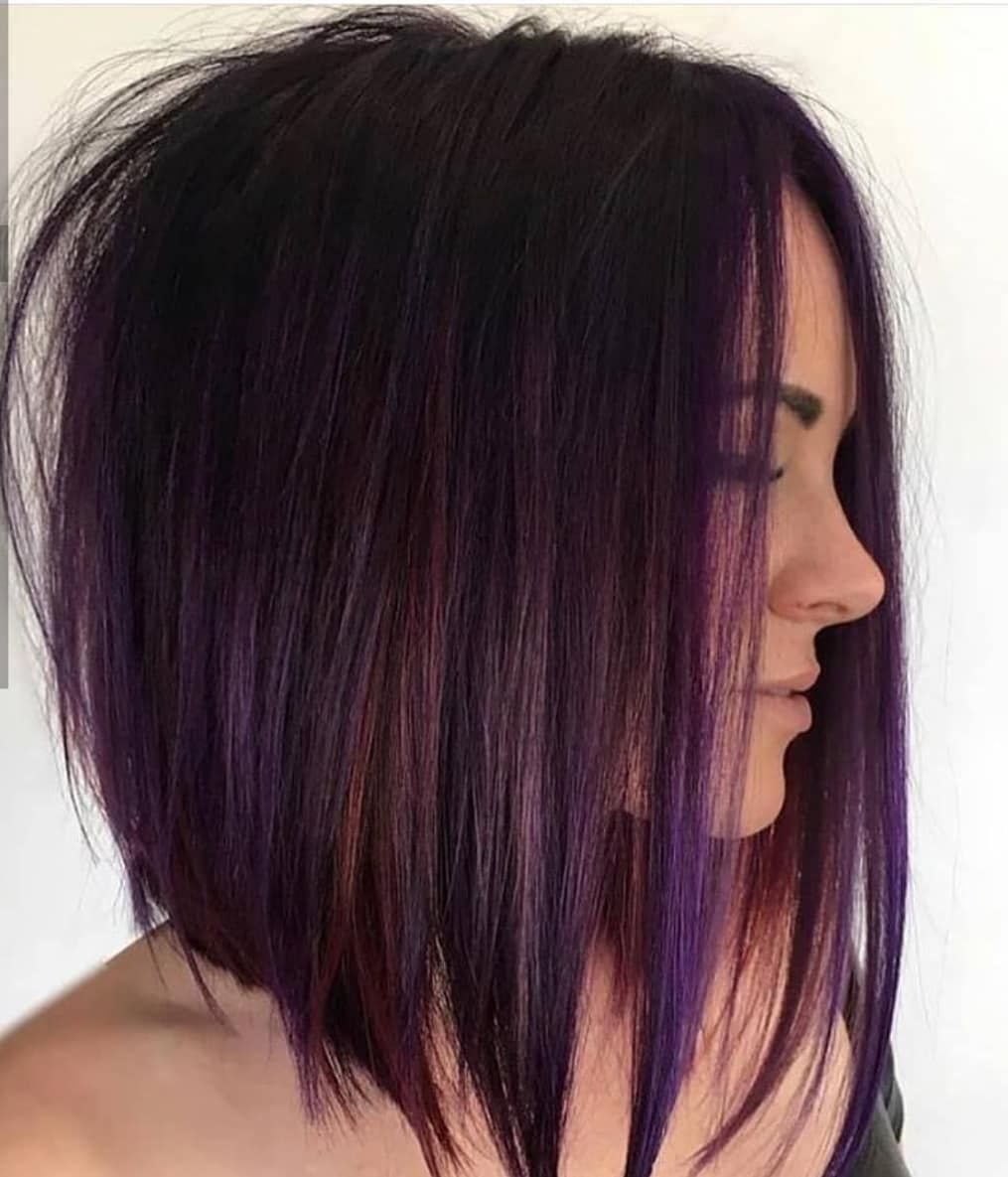 Стрижка с фиолетовыми прядями