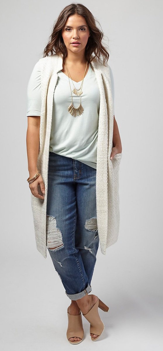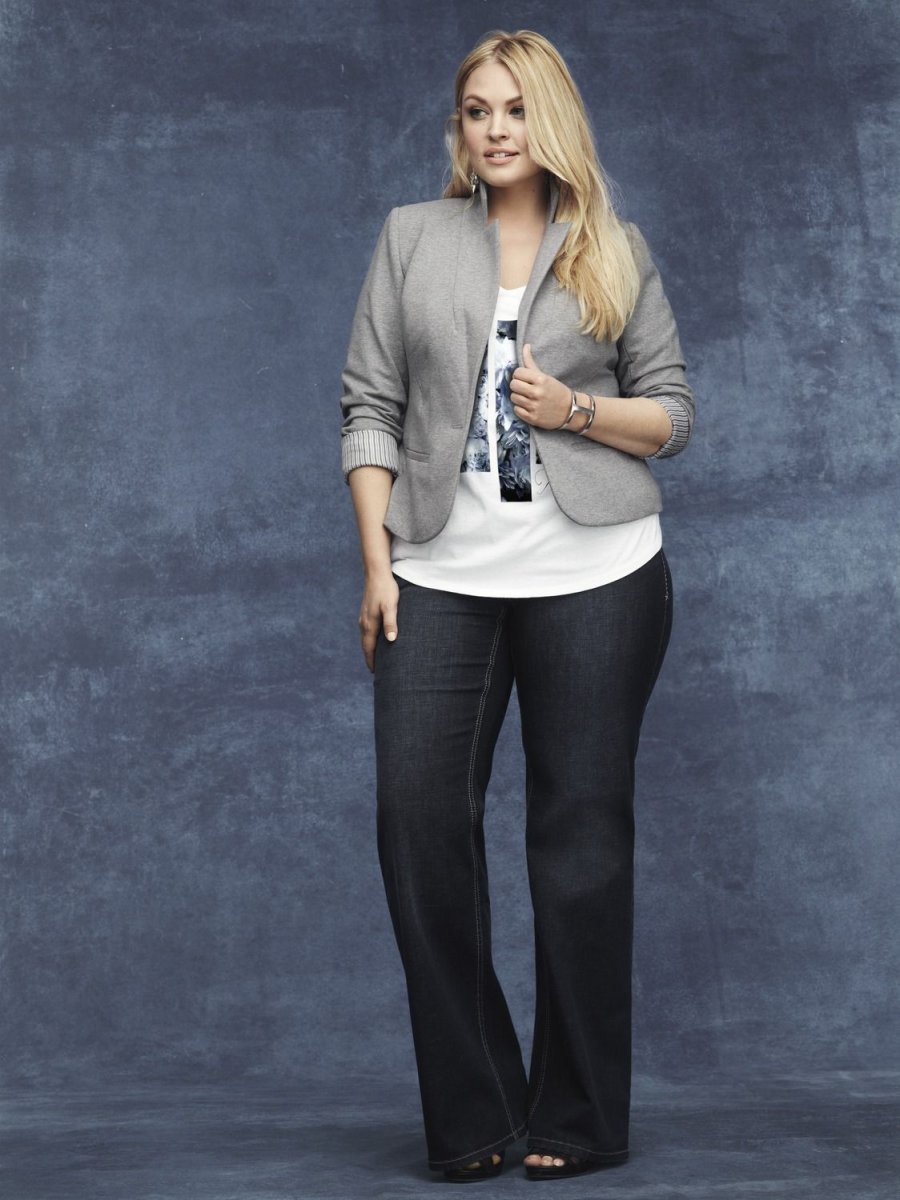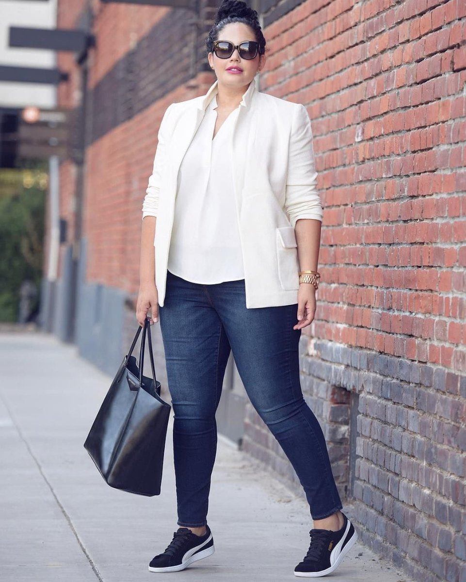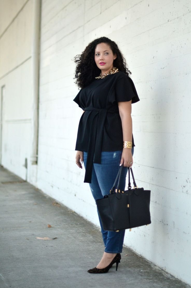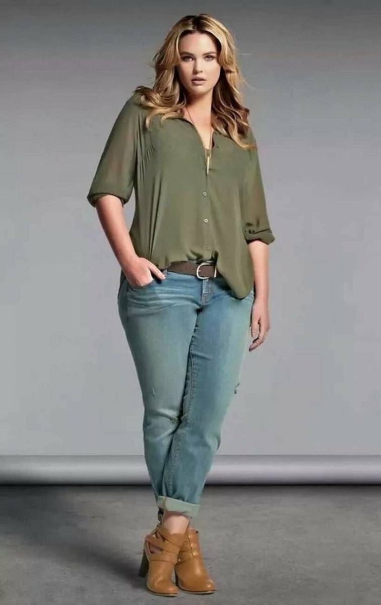 Образ с укороченными джинсами для полных женщин