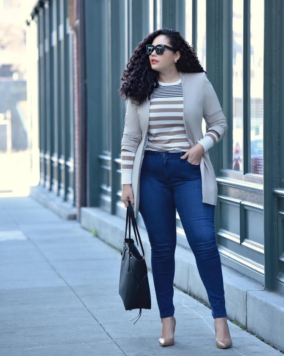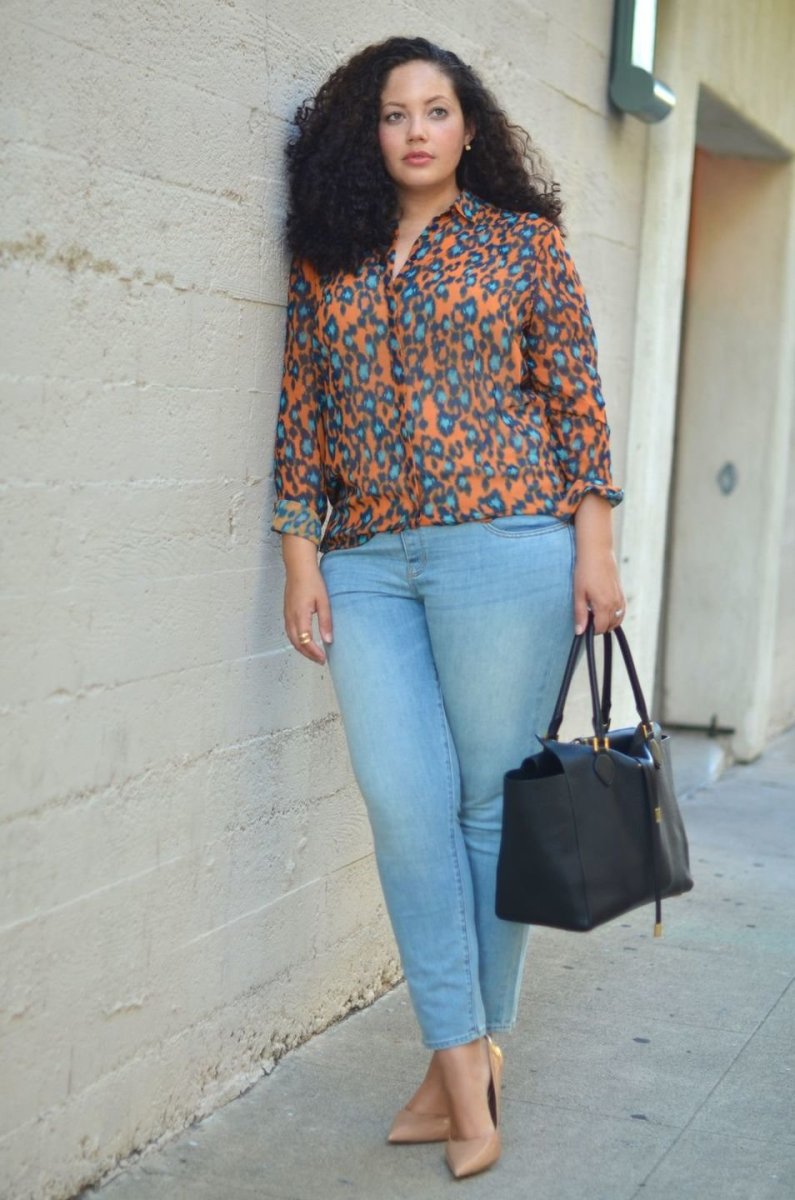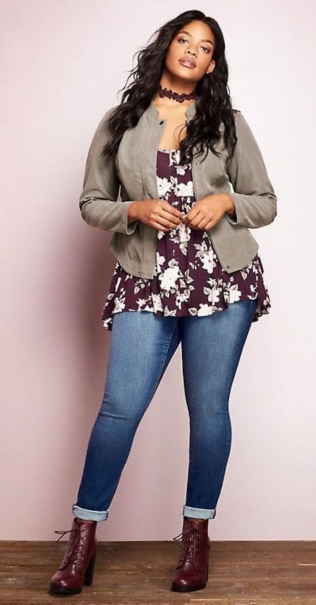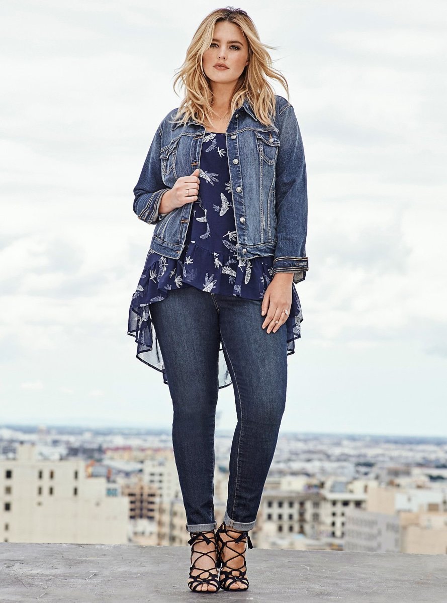 Образ с укороченными джинсами для полных женщин