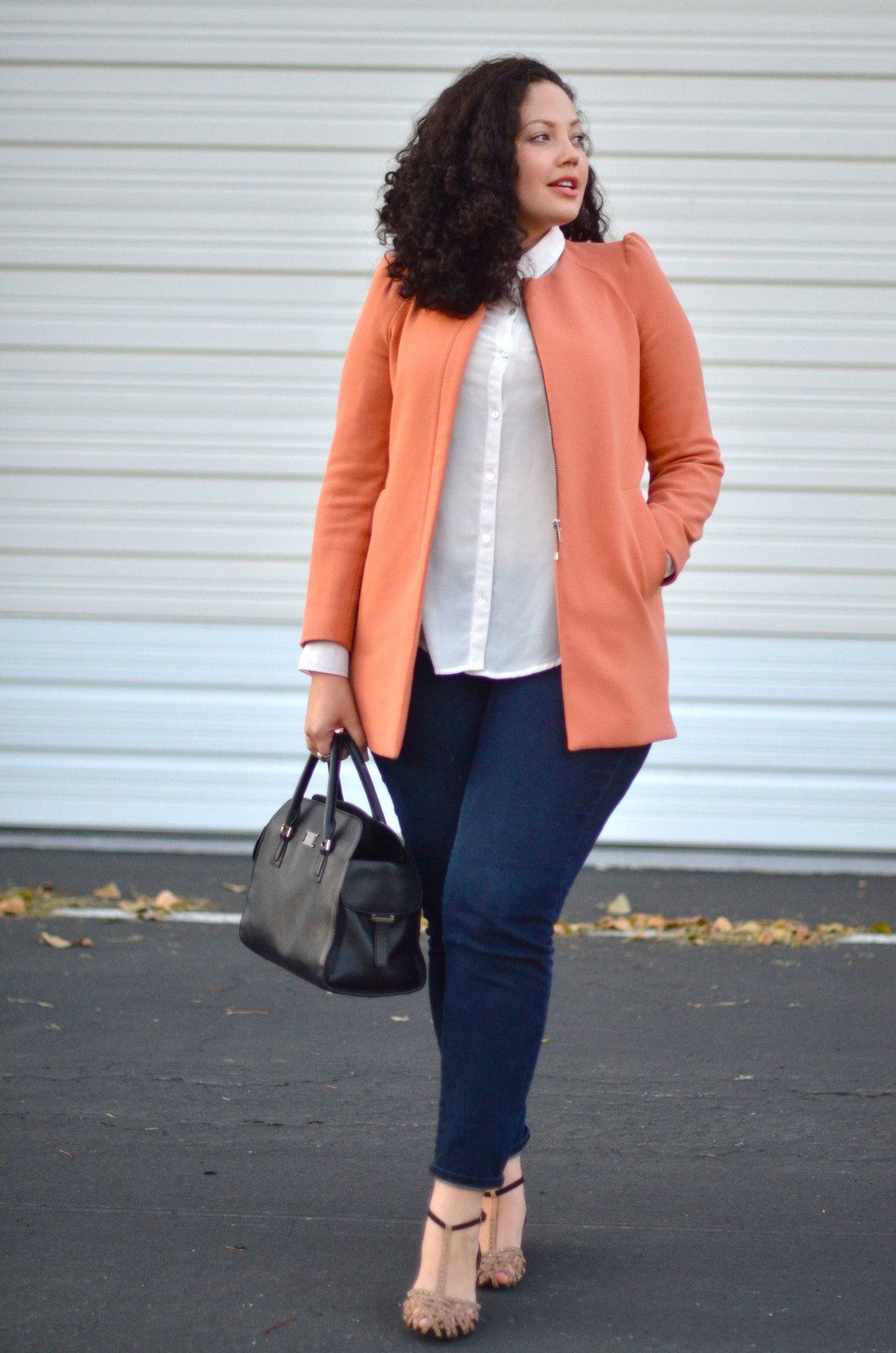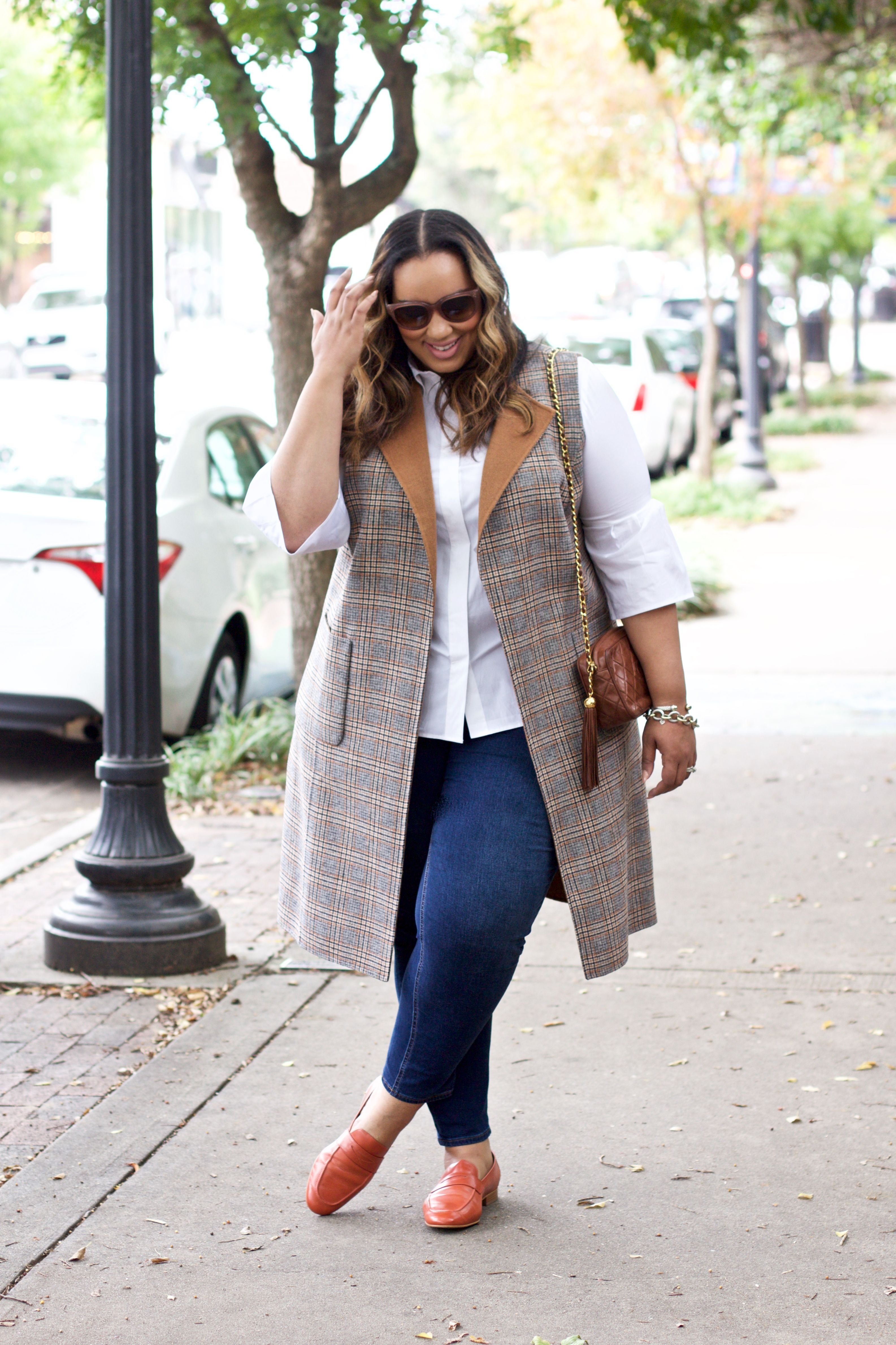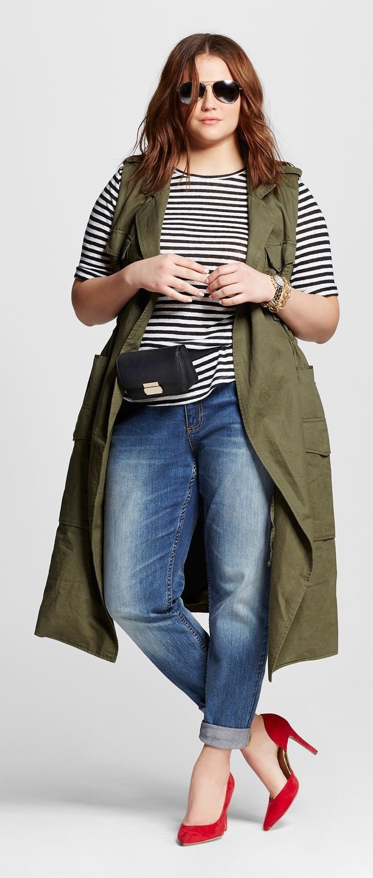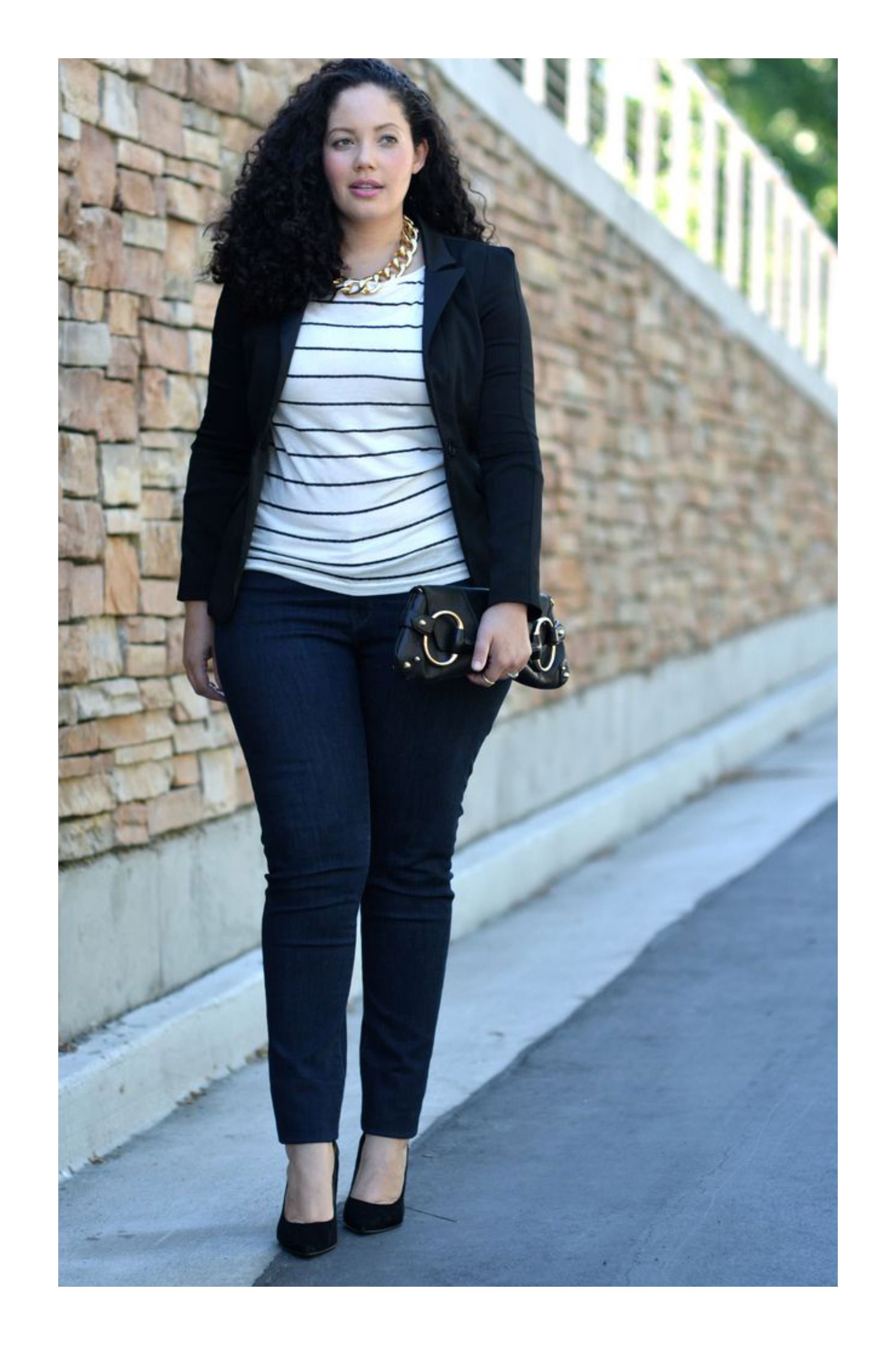 Образ с укороченными джинсами для полных женщин