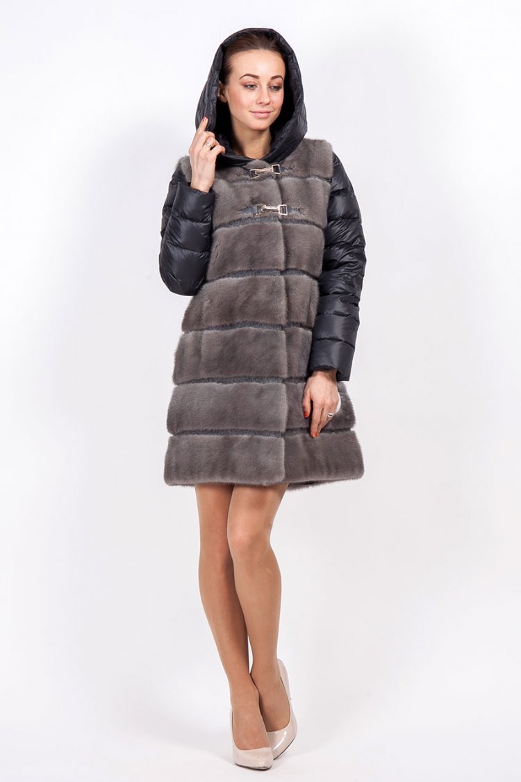 Комбинированная куртка пуховик с норкой арт l-20658-2-85-vn-n