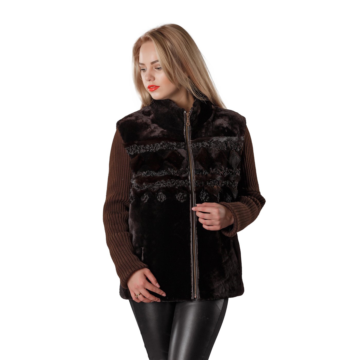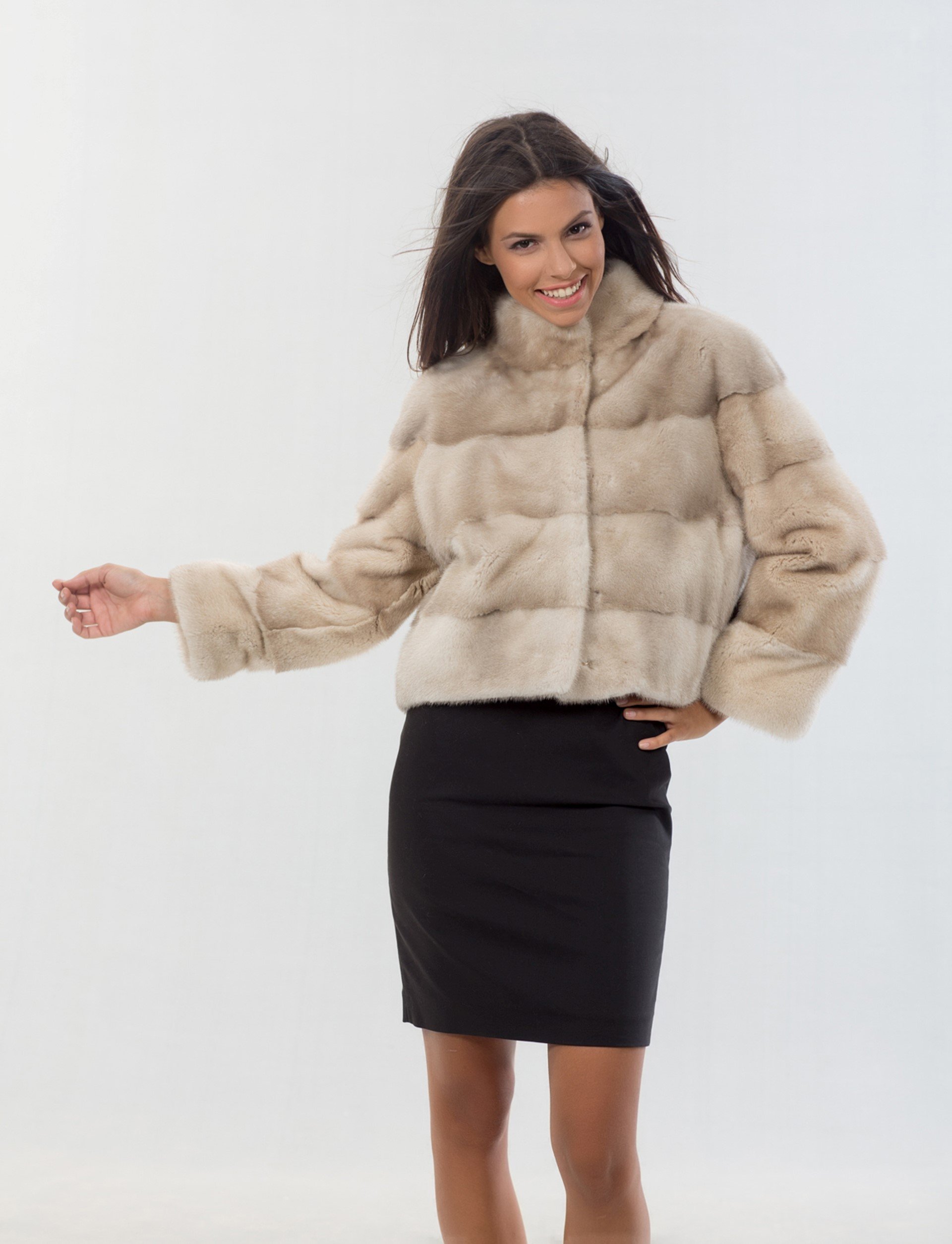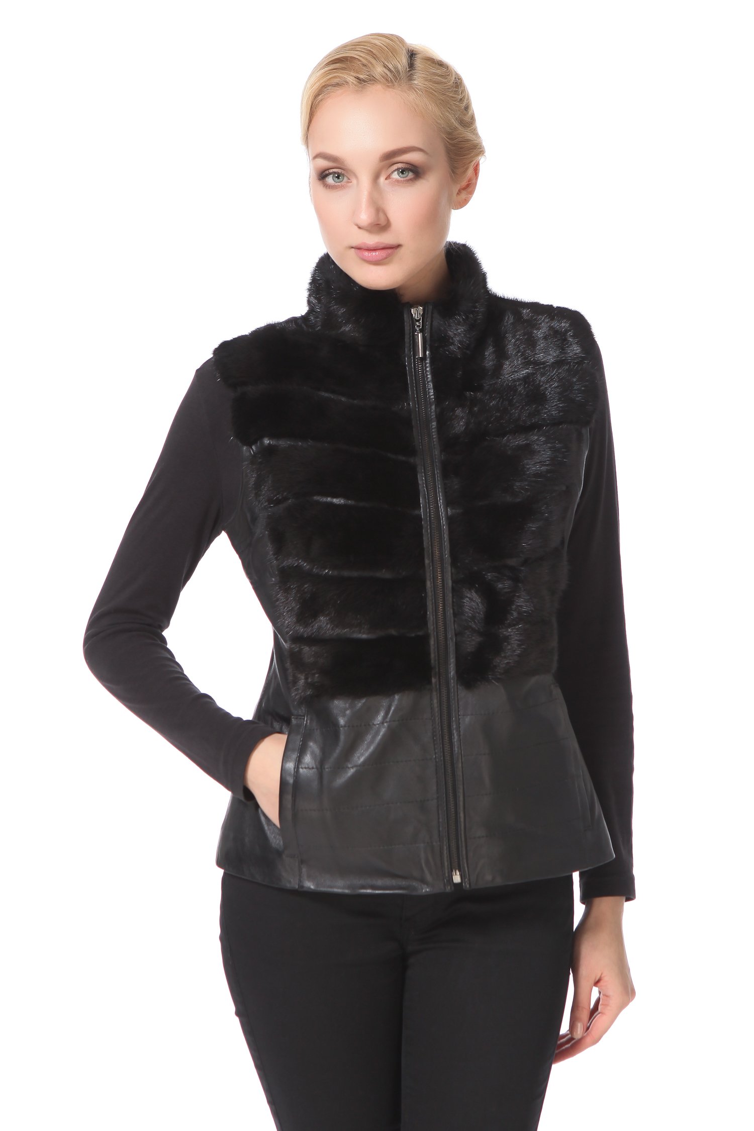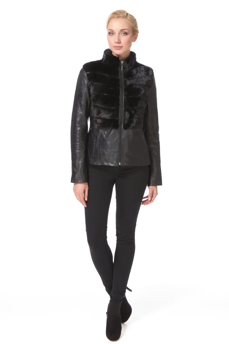 Кожаная куртка женская Lale Antilop норковый воротник стойка