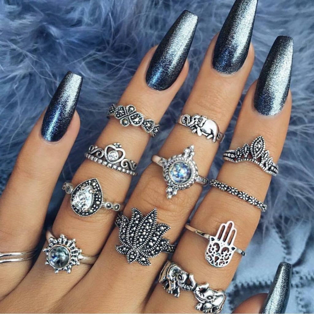 Серый маникюр на острые ногти