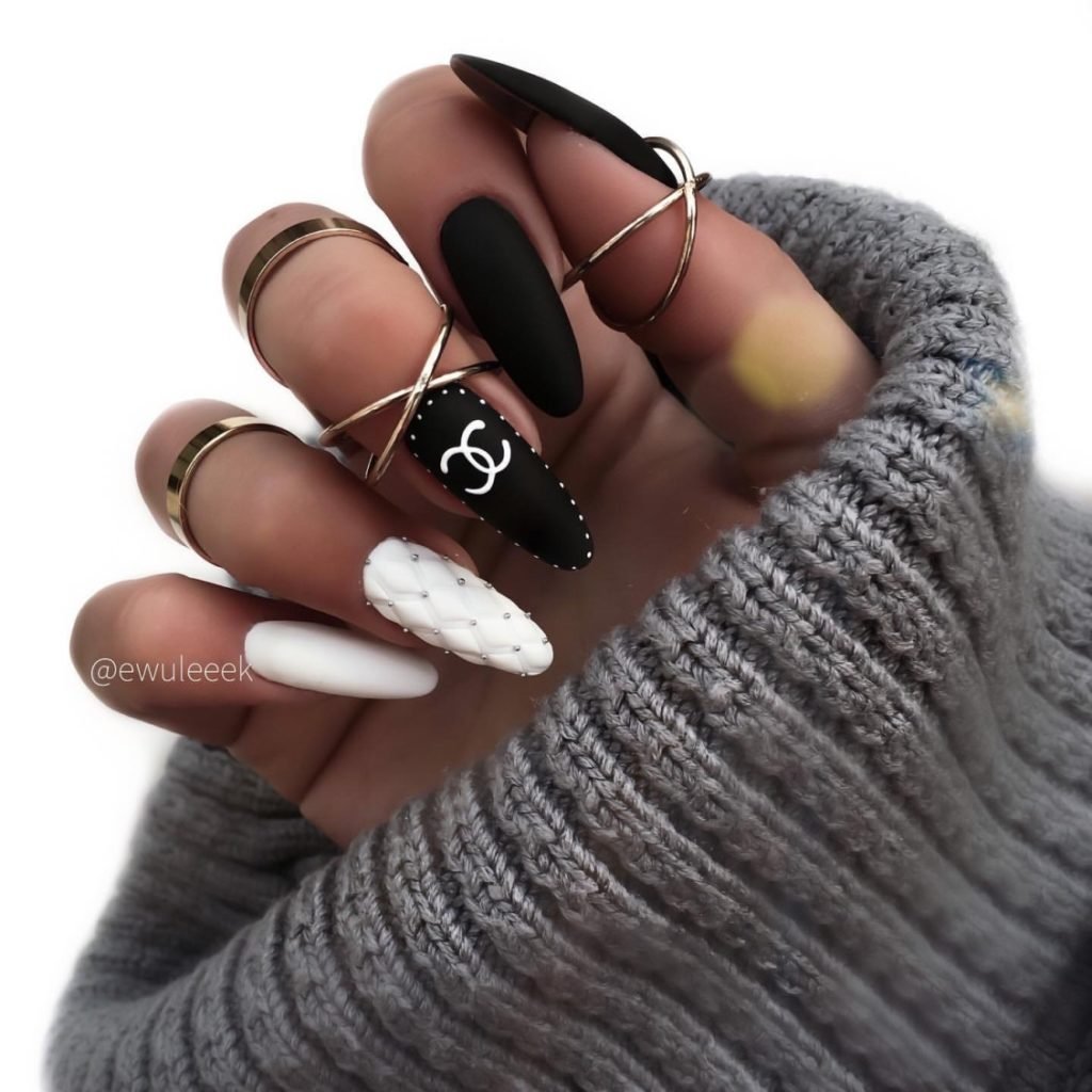 Чёрный маникюр 2022 на миндаль