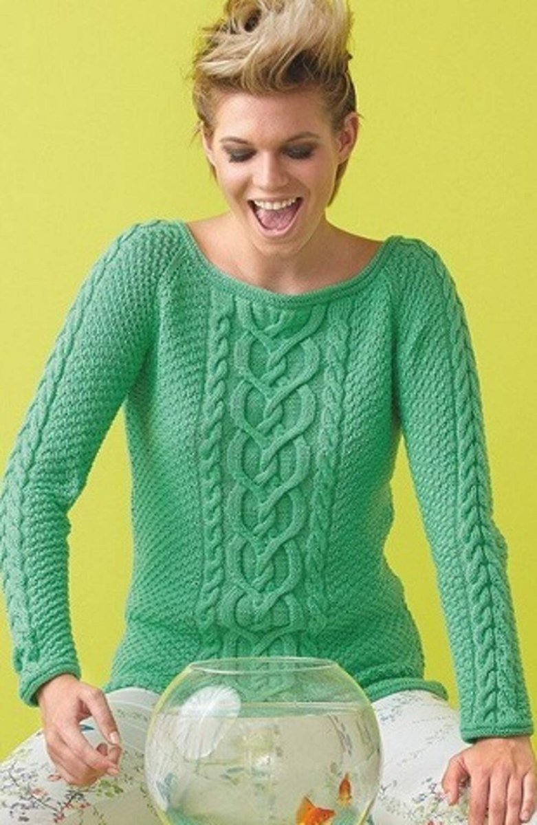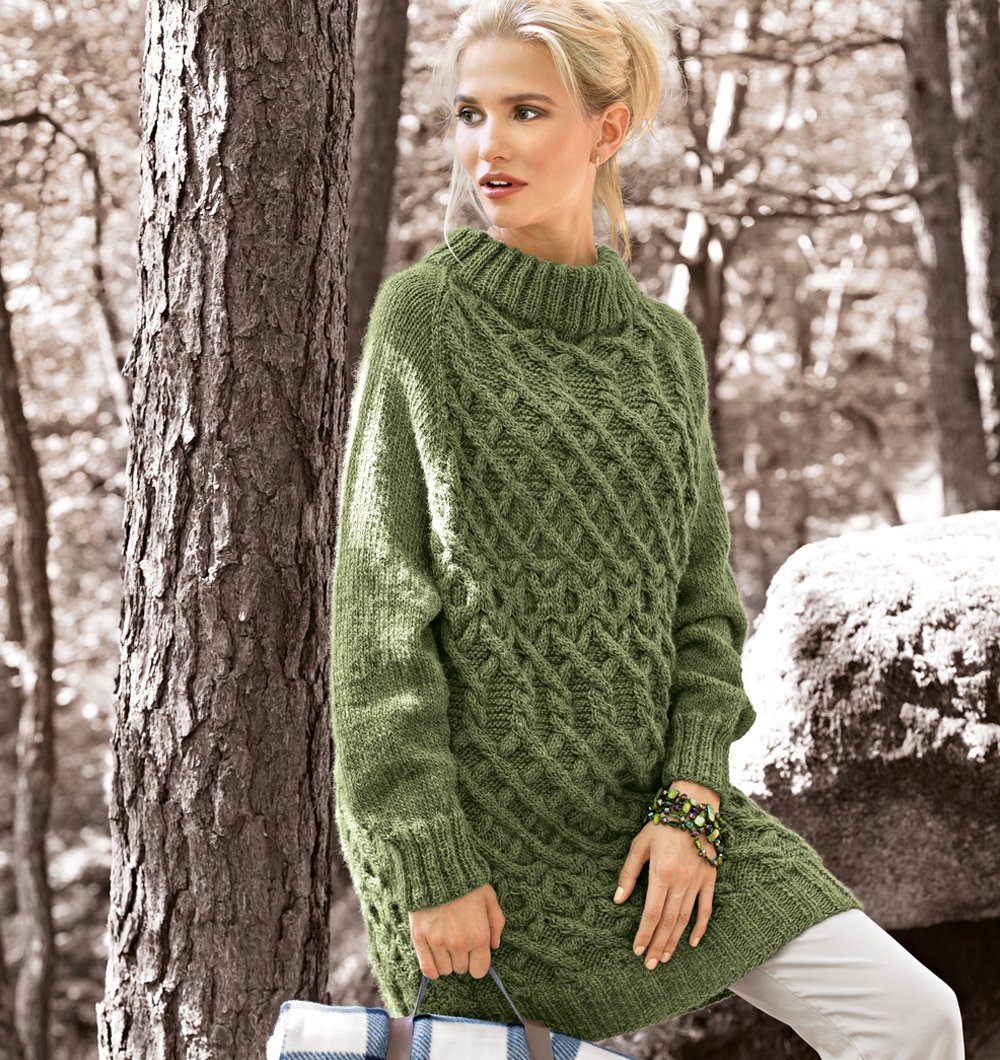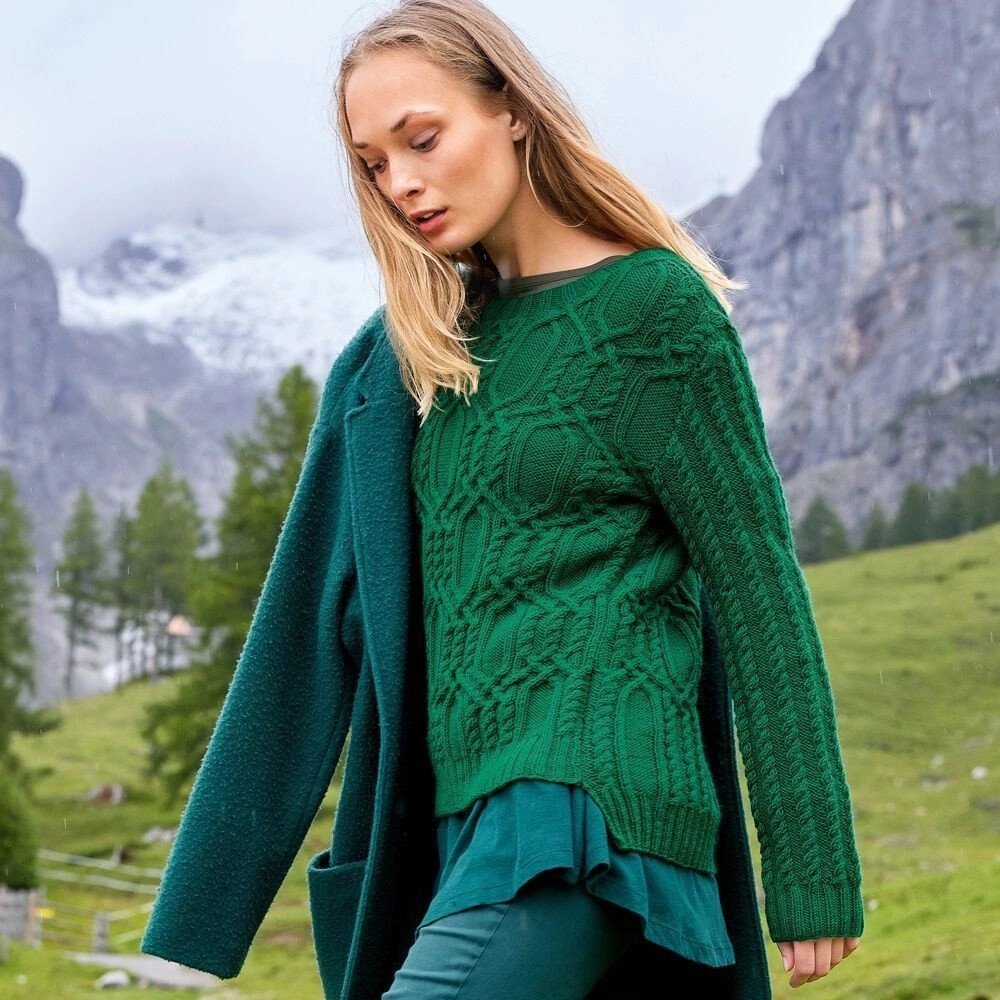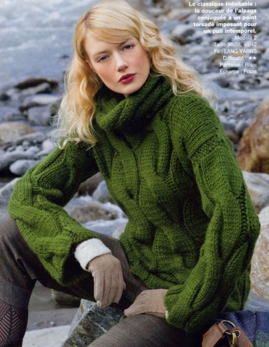 Зеленый свитер с косами