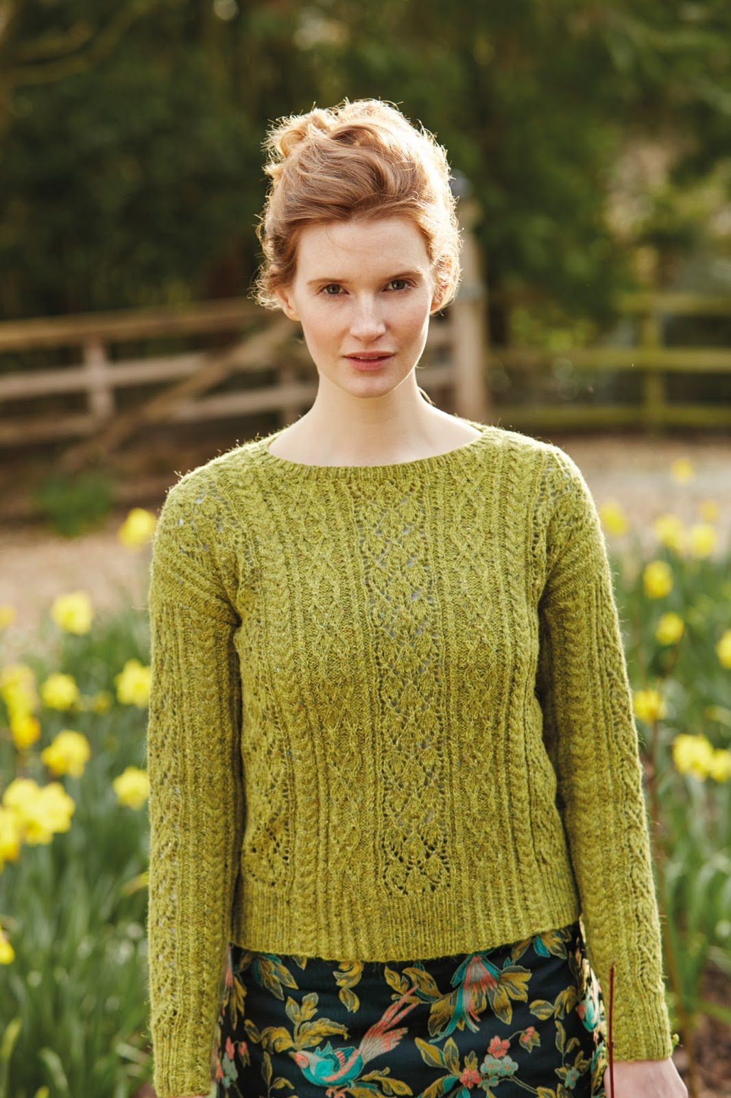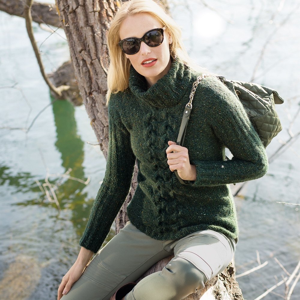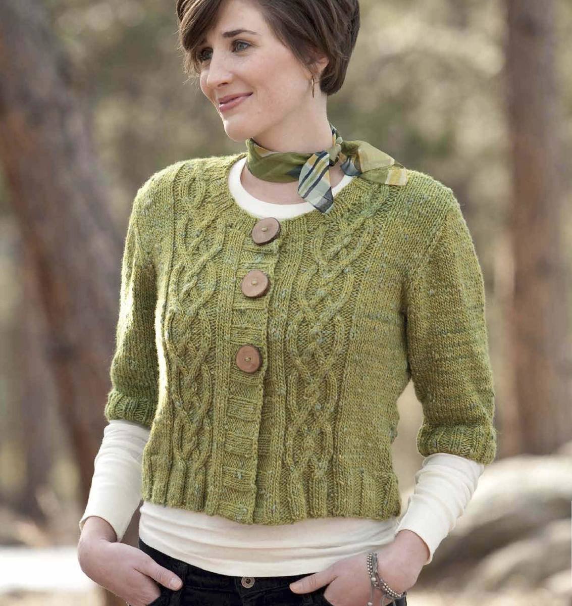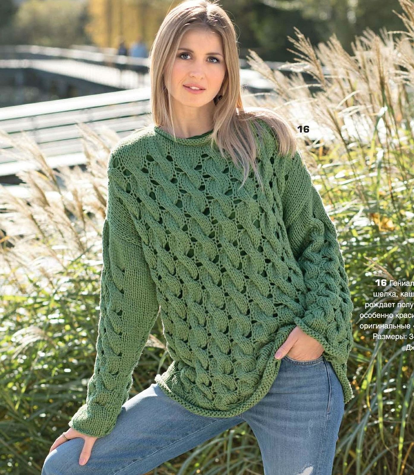 Зеленый свитер с косами