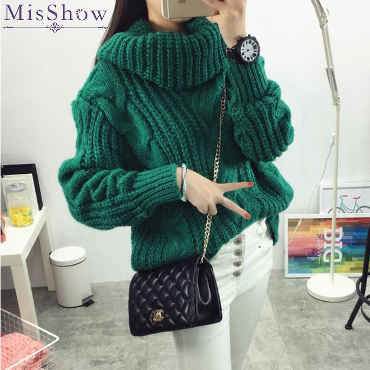 Сочетание зеленого джемпера