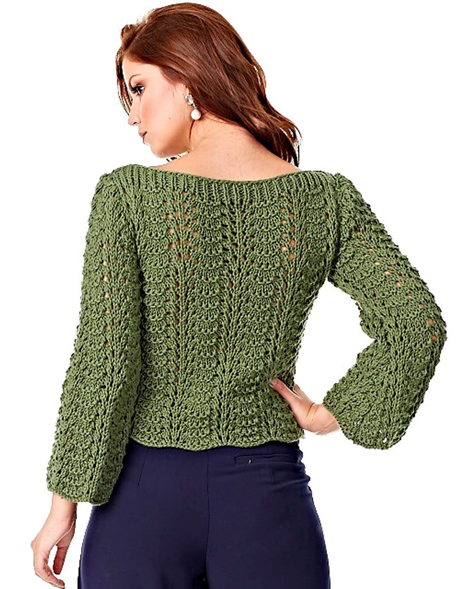 Зеленый джемпер спицами