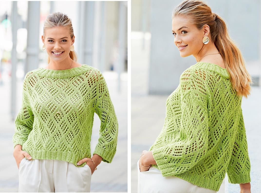 Салатовый летний свитер спицами
