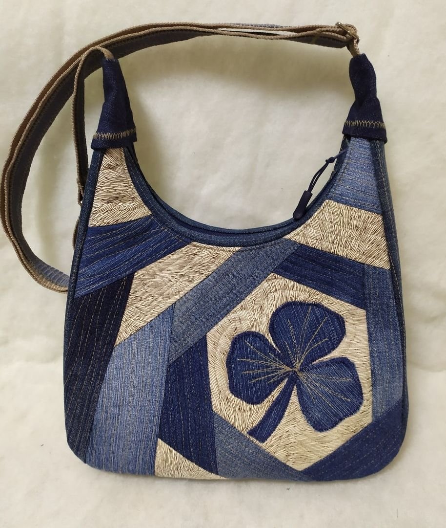 Аппликация на джинсовую сумку Лоскутная